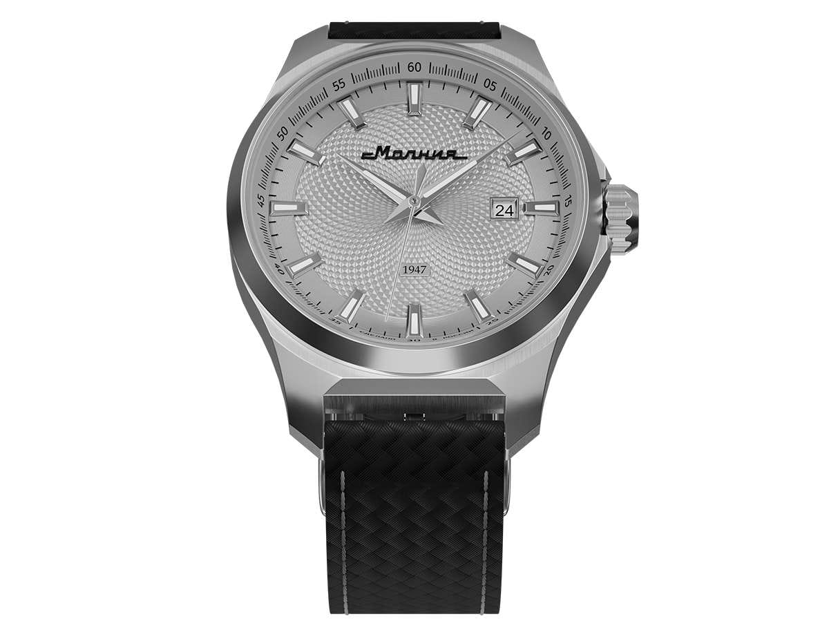 Мужские механические часы с автоподзаводом — это надёжный аксессуар от легендарного бренда «МОЛНИЯ», созданный на Челябинском часовом заводе. Корпус диаметром 42 мм выполнен из нержавеющей стали 316L с зеркальной полировкой. БезельБезельВнешний ободок, закрепляющий стекло. В спортивных часах так называется поворотное кольцо с делениями на циферблате, выполняет роль таймера – замеряет отрезки времени на шкале. Неподвижный безель – элемент декора. Однонаправленно вращающийся безель на дайверских часах позволяет фиксировать моменты погружения и выныривания на поверхность. также выполнен из стали с зеркальной отделкой. Циферблат серебристого цвета оформлен индексами и стрелками. Окошко даты расположено в положении 3 часов. Стрелки и метки с люминесцентным покрытиемЛюминесцентное покрытиеПозволяет считывать показания времени в темноте. Производители наносят на стрелки, часовые индексы, безель или поверхность циферблата светонакопительный состав, дающий холодное свечение. Super-LumiNova, обеспечивающим хорошую читаемость в темноте. Циферблат защищён сапфировым стекломСапфировое стеклоПрочный и надёжный материал из кристалла сапфира синтетического происхождения, характеризующийся особой твёрдостью и устойчивостью к царапинам и повреждениям. с антибликовым покрытиемАнтибликовое покрытиеСлой оксида металла в 0,13-0,3 микрон, благодаря которому стекло часов не бликует и не отражает свет. Антибликовое покрытие уменьшает отражение света в 10 раз, обеспечивая отличную читаемость показателей циферблата.. Механизм — японский автоматический калибр Miyota 8215 с функцией и запасом хода до 42 часов. Прозрачная задняя крышка позволяет наблюдать за работой механизма с кастомным ротором. Часы оснащены кожаным ремешком чёрного цвета с подкладкой из фтористого каучука и классической пряжкой, а также системой быстрой замены. Водонепроницаемость 100 м позволяет использовать часы для плавания и повседневного ношения. Идеальный выбор для тех, кто ценит качество, точность и стиль.