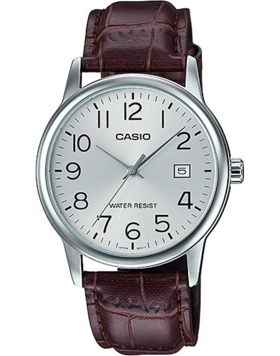 Casio MTP-V002L-7B2 – мужские классические стильные часы от всемирно известного японского бренда, который успел зарекомендовать себя как отличный производитель часов на мировом рынке Механизм в часах кварцевый, работающий от батарейки Водонепроницаемость этих часов 30 м (30WR) выдерживают лишь брызги воды Стекло минеральное Корпус из высококачественного стального сплава 316L с высокими антикоррозийными свойствами  Время отображается при помощи стрелок, в формате 12 часов Отображение даты Ремешок сделан из мягкой, эластичной кожи
