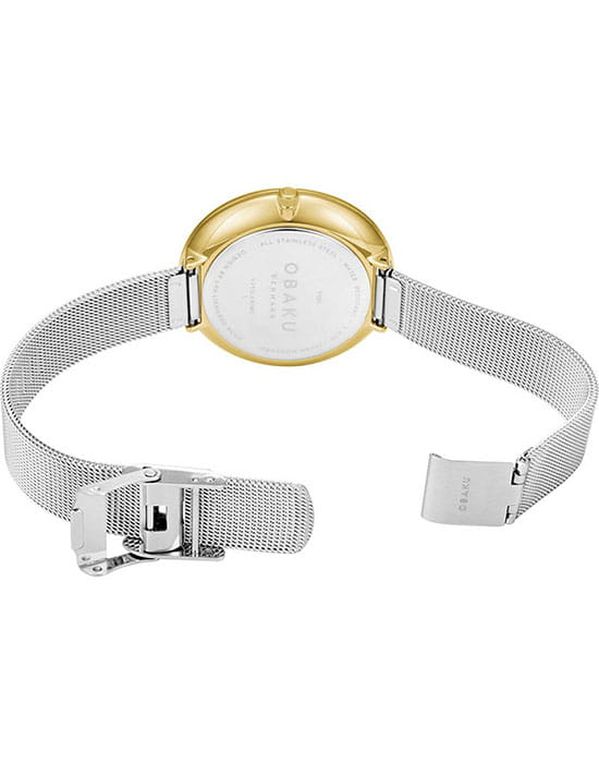 Женские наручные часы на стальном браслете Obaku Mesh V211LXGIMC, кварцевый механизм с высокой точностью. Класс водозащиты: 30 метров, позволит защитить корпус от случайных брызг или капель дождя. Корпус часов изготовлен из матовой стали с IP-покрытиемIP-покрытиеМетод ионного напыления. Демонстрирует повышенную устойчивость к истиранию, окислению и химическим веществам. Под воздействием высокого давления и температуры около 1500°C молекулы металла надёжно соединяются с частицами корпуса часов. цвета желтого золота. Стальной браслет выполнен в технике миланского плетения, раскладная застёжкаРаскладная застёжкаТакой тип застёжки используется только на браслетах из металла. Она никогда не раскрывается полностью, происходит разделение на 2 и более частей. Раскладывающая застёжка снизит вероятность потери часов к минимуму.. Прочное минеральное стеклоМинеральное стеклоМинеральное стекло представляет собой искусственно выращенный минерал кварца. Такое стекло отличается особой устойчивостью к повреждениям и царапинам. Уступает по некоторым качествам сапфировому стеклу. устойчивое к мелким механическим повреждениям.
