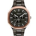 Мужские датские наручные часы Obaku Oktant V275GMMBSB, кварцевый механизм с высокой точностью. Минеральное стеклоМинеральное стеклоМинеральное стекло представляет собой искусственно выращенный минерал кварца. Такое стекло отличается особой устойчивостью к повреждениям и царапинам. Уступает по некоторым качествам сапфировому стеклу. устойчивое к появлению царапин, обладающее высокой прозрачностью. Класс водозащиты: 50 метров, позволит защитить корпус от случайных брызг или капель дождя. Корпус часов изготовлен из стали c IP-покрытиемIP-покрытиеМетод ионного напыления. Демонстрирует повышенную устойчивость к истиранию, окислению и химическим веществам. Под воздействием высокого давления и температуры около 1500°C молекулы металла надёжно соединяются с частицами корпуса часов. черного цвета и частичным покрытием цвета розового золота по безелюБезельВнешний ободок, закрепляющий стекло. В спортивных часах так называется поворотное кольцо с делениями на циферблате, выполняет роль таймера – замеряет отрезки времени на шкале. Неподвижный безель – элемент декора. Однонаправленно вращающийся безель на дайверских часах позволяет фиксировать моменты погружения и выныривания на поверхность.. Застёжка бабочка с кнопкамиЗастёжка "бабочка"Такой вид застёжки дополняется предохранителями, помогающими избежать случайного раскрытия браслета. Обладают изящным исполнением. .