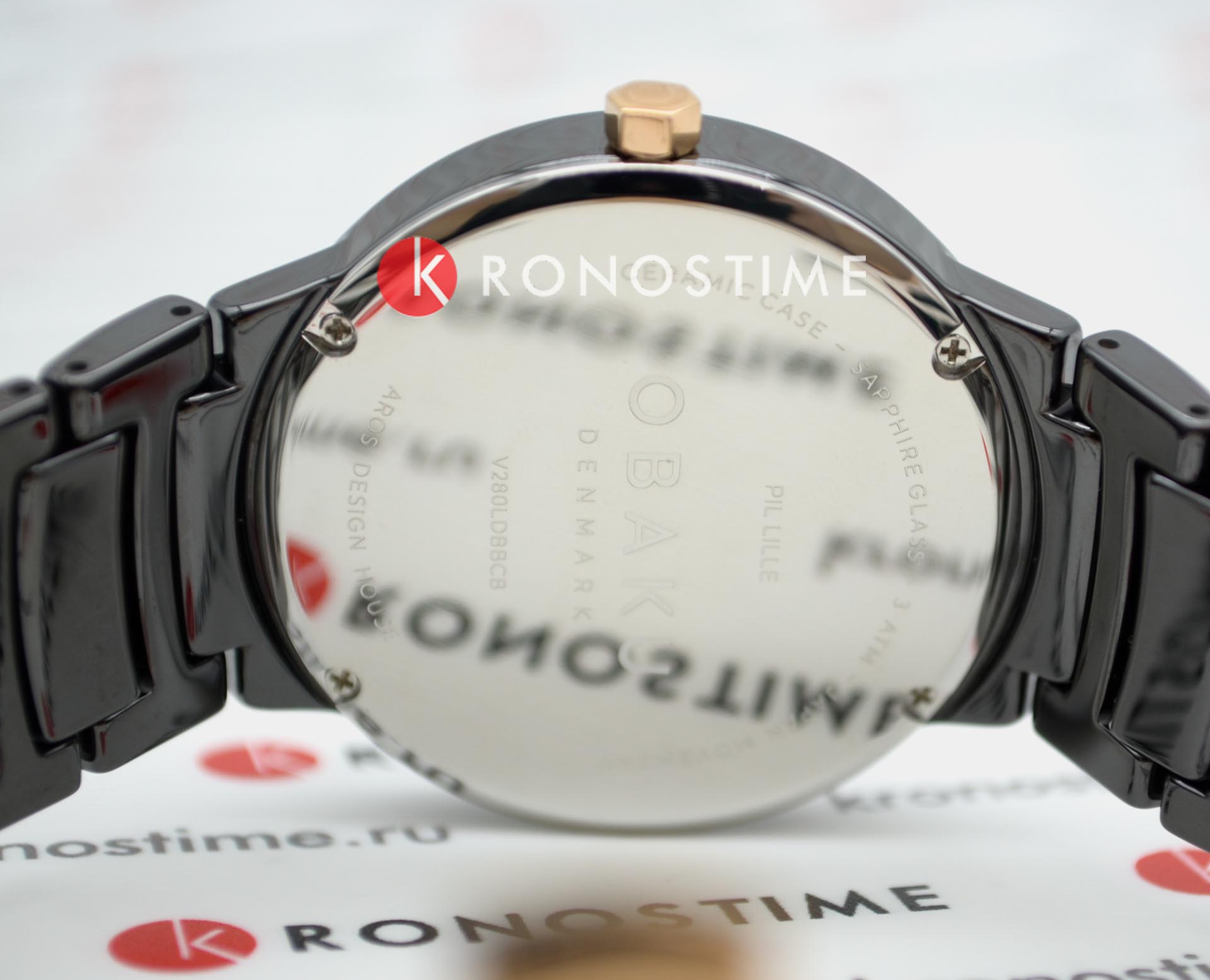Женские датские кварцевые керамические часы с сапфировым стекломСапфировое стеклоПрочный и надёжный материал из кристалла сапфира синтетического происхождения, характеризующийся особой твёрдостью и устойчивостью к царапинам и повреждениям., устойчивым к появлению царапин, обладающим высокой прозрачностью, Obaku Pil Lille V280LDBBCB. Класс водозащиты: 30 метров, позволит защитить корпус от случайных брызг или капель дождя. Корпус часов изготовлен из керамики. Керамический браслет на раскладной застёжкеРаскладная застёжкаТакой тип застёжки используется только на браслетах из металла. Она никогда не раскрывается полностью, происходит разделение на 2 и более частей. Раскладывающая застёжка снизит вероятность потери часов к минимуму.. Окошко даты находится в положении 3 часа.