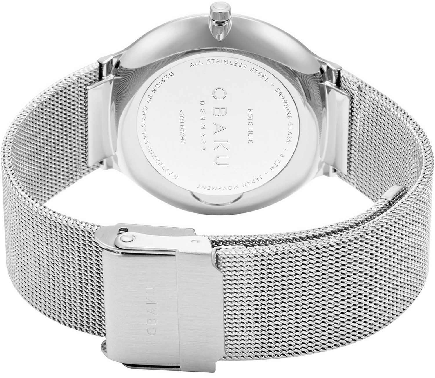 Женские наручные кварцевые часы с сапфировым стекломСапфировое стеклоПрочный и надёжный материал из кристалла сапфира синтетического происхождения, характеризующийся особой твёрдостью и устойчивостью к царапинам и повреждениям. Obaku Mesh V285LECWMC, кварцевый механизм с высокой точностью. Класс водозащиты: 30 метров, позволит защитить корпус от случайных брызг или капель дождя. Корпус часов изготовлен из стали. Стальной браслет выполнен в технике миланского плетения на раскладной застёжкеРаскладная застёжкаТакой тип застёжки используется только на браслетах из металла. Она никогда не раскрывается полностью, происходит разделение на 2 и более частей. Раскладывающая застёжка снизит вероятность потери часов к минимуму., ширина 18 мм. БезельБезельВнешний ободок, закрепляющий стекло. В спортивных часах так называется поворотное кольцо с делениями на циферблате, выполняет роль таймера – замеряет отрезки времени на шкале. Неподвижный безель – элемент декора. Однонаправленно вращающийся безель на дайверских часах позволяет фиксировать моменты погружения и выныривания на поверхность. инкрустирован кристаллами.