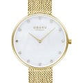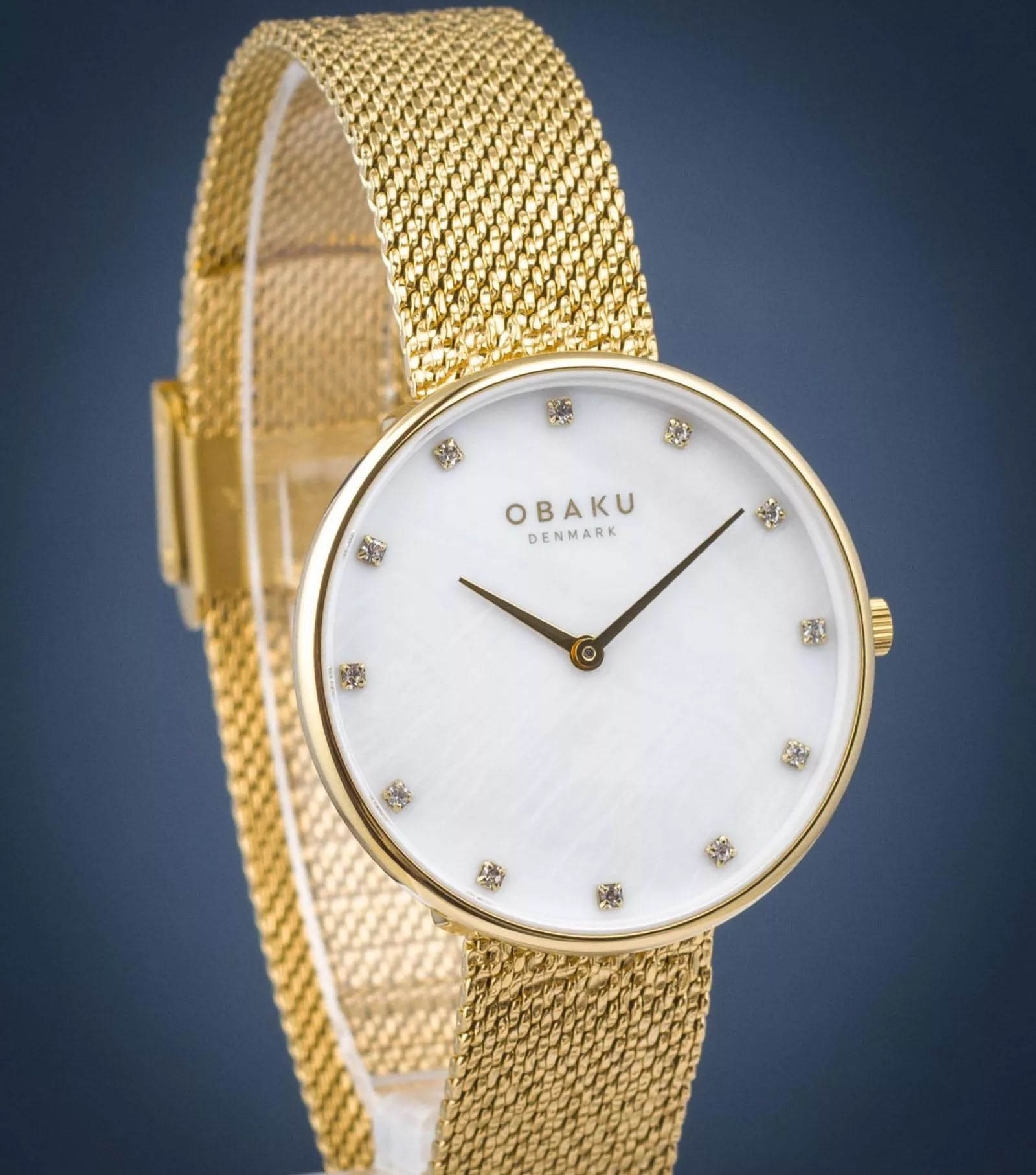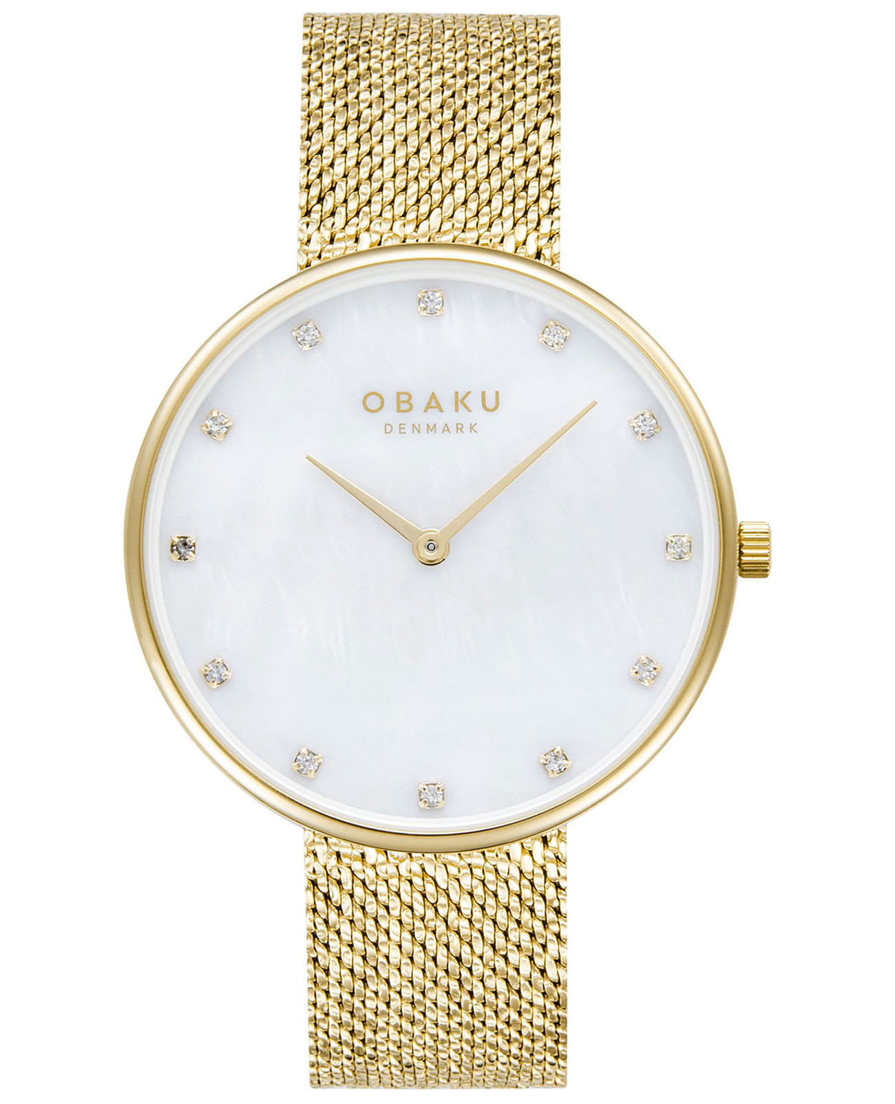Женские наручные кварцевые часы с минеральным стекломМинеральное стеклоМинеральное стекло представляет собой искусственно выращенный минерал кварца. Такое стекло отличается особой устойчивостью к повреждениям и царапинам. Уступает по некоторым качествам сапфировому стеклу. Obaku Mesh V288LXGWHG, кварцевый механизм с высокой точностью. Класс водозащиты: 30 метров, позволит защитить корпус от случайных брызг или капель дождя. Корпус часов изготовлен из стали с IP-покрытиемIP-покрытиеМетод ионного напыления. Демонстрирует повышенную устойчивость к истиранию, окислению и химическим веществам. Под воздействием высокого давления и температуры около 1500°C молекулы металла надёжно соединяются с частицами корпуса часов.. Стальной браслет выполнен в технике миланского плетения на раскладной застёжкеРаскладная застёжкаТакой тип застёжки используется только на браслетах из металла. Она никогда не раскрывается полностью, происходит разделение на 2 и более частей. Раскладывающая застёжка снизит вероятность потери часов к минимуму. с IP-покрытиемIP-покрытиеМетод ионного напыления. Демонстрирует повышенную устойчивость к истиранию, окислению и химическим веществам. Под воздействием высокого давления и температуры около 1500°C молекулы металла надёжно соединяются с частицами корпуса часов.. Циферблат инкрустирован кристаллами.