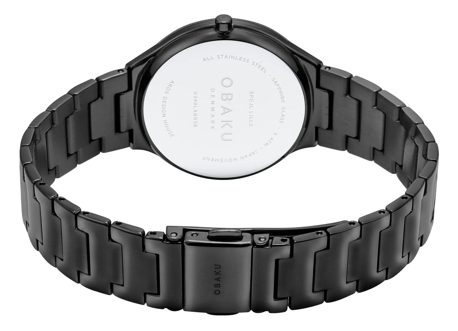 Женские датские кварцевые стальные часы с сапфировым стекломСапфировое стеклоПрочный и надёжный материал из кристалла сапфира синтетического происхождения, характеризующийся особой твёрдостью и устойчивостью к царапинам и повреждениям., устойчивым к появлению царапин, Obaku Links V290LXBBSB. Класс водозащиты: 30 метров, позволит защитить корпус от случайных брызг или капель дождя. Корпус часов из нержавеющей стали с IP-покрытиемIP-покрытиеМетод ионного напыления. Демонстрирует повышенную устойчивость к истиранию, окислению и химическим веществам. Под воздействием высокого давления и температуры около 1500°C молекулы металла надёжно соединяются с частицами корпуса часов.. Браслет на раскладной застёжкеРаскладная застёжкаТакой тип застёжки используется только на браслетах из металла. Она никогда не раскрывается полностью, происходит разделение на 2 и более частей. Раскладывающая застёжка снизит вероятность потери часов к минимуму..