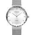 Женские наручные часы Obaku Diamond V300LXCIMC, кварцевый механизм с высокой точностью. Минеральное стеклоМинеральное стеклоМинеральное стекло представляет собой искусственно выращенный минерал кварца. Такое стекло отличается особой устойчивостью к повреждениям и царапинам. Уступает по некоторым качествам сапфировому стеклу. устойчивое к мелким механическим повреждениям. Корпус и браслет часов изготовлены из нержавеющей стали. Класс водозащиты: 30 метров, позволит защитить корпус от случайных брызг или капель дождя. Стальной браслет миланского плетения на раскладном замкеРаскладной замокДанный вариант застежки используется только на часах с металлическим браслетом. Отличительная особенность такого крепления в том, что длина браслета становится универсальной и вы можете самостоятельно отрегулировать нужный вам размер – застежка просто двигается по браслету часов.. Часы украшены бриллиантом.