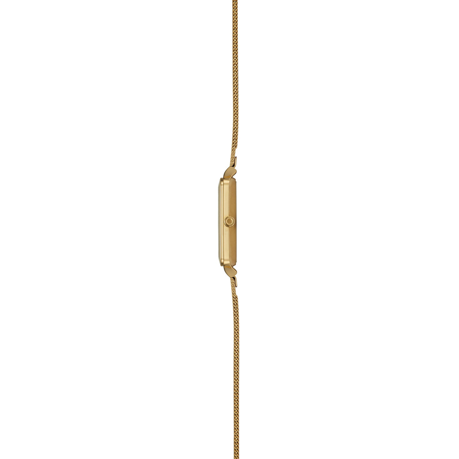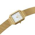 Женские кварцевые часы Obaku V309LXGWMG выполнены в минималистичном и элегантном стиле. Корпус квадратной формы из нержавеющей стали с IP-покрытиемIP-покрытиеМетод ионного напыления. Демонстрирует повышенную устойчивость к истиранию, окислению и химическим веществам. Под воздействием высокого давления и температуры около 1500°C молекулы металла надёжно соединяются с частицами корпуса часов. цвета желтого золота имеет габариты 26 х 31 мм и толщину всего 4.8 мм, что делает их лёгкими и удобными на руке. Циферблат белого цвета оснащён центральными часовой и минутной стрелками, дизайн которых подчёркивает чистоту линий и отсутствие лишних деталей. Защиту циферблата обеспечивает сапфировое стеклоСапфировое стеклоПрочный и надёжный материал из кристалла сапфира синтетического происхождения, характеризующийся особой твёрдостью и устойчивостью к царапинам и повреждениям., устойчивое к появлению царапин. Браслет выполнен по технологии из стали с покрытием и оснащён раскладной застёжкойРаскладная застёжкаТакой тип застёжки используется только на браслетах из металла. Она никогда не раскрывается полностью, происходит разделение на 2 и более частей. Раскладывающая застёжка снизит вероятность потери часов к минимуму. для надёжной фиксации на запястье. Водозащита позволяет использовать часы в повседневных условиях без риска повреждения от случайных брызг воды. Это сочетание лаконичного дизайна, прочности материалов и точности механизма для тех, кто ценит стиль и комфорт в каждой детали.
