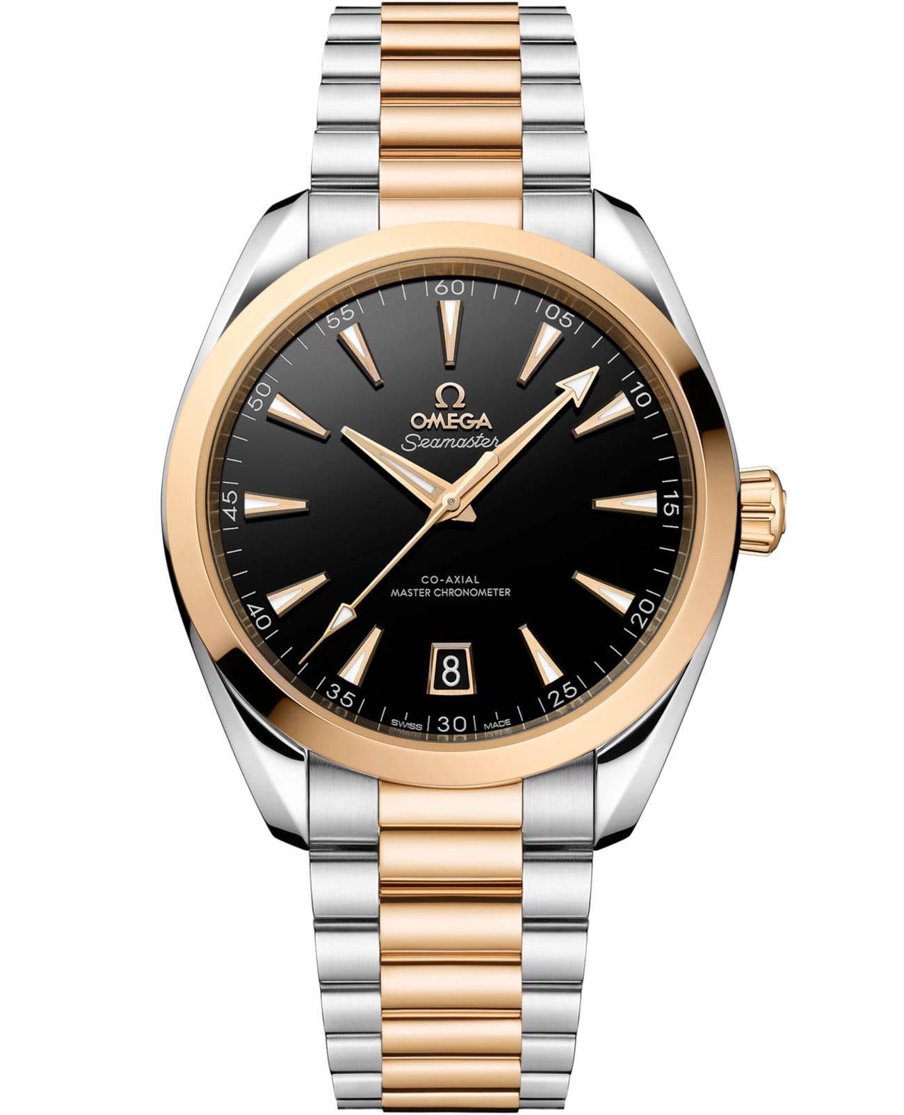 Omega Seamaster Aqua Terra выполнены в симметричном корпусе из нержавеющей стали и золота 18K Moonshine™ с завинчивающейся задней крышкой, декоративным волнистым узором. Циферблат дополнил окошком даты на 6 часов и логотипом OMEGA в центре. Стрелки и метки оснащены Super-LumiNova для лучшей читаемости в темноте. Механизм Калибр Omega 8900 сертифицирован как Master Chronometer — гарантия высочайшей точности и устойчивости к магнитным полям. Запас хода составляет 60 часов. Защита циферблата обеспечивается сапфировое стеклоСапфировое стеклоПрочный и надёжный материал из кристалла сапфира синтетического происхождения, характеризующийся особой твёрдостью и устойчивостью к царапинам и повреждениям. с антибликовым покрытиемАнтибликовое покрытиеСлой оксида металла в 0,13-0,3 микрон, благодаря которому стекло часов не бликует и не отражает свет. Антибликовое покрытие уменьшает отражение света в 10 раз, обеспечивая отличную читаемость показателей циферблата.. Водозащита Позволяет использовать часы в воде без повреждений. Часы установлены на интегрированном браслете с полированными и матовыми звеньями. Это сочетание премиального качества, технологичности и классического дизайна.
