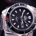Чёрный циферблат с крупной индикацией времени не имеет лишних деталей. Японский автоматический калибр Orient 46943 имеет запас хода на 40 часов. Завинчивающаяся задняя крышка и заводная головка усиливают водостойкость в 200 метров. люминесцентная подсветкаЛюминесцентное покрытиеПозволяет считывать показания времени в темноте. Производители наносят на стрелки, часовые индексы, безель или поверхность циферблата светонакопительный состав, дающий холодное свечение. позволяет просматривать время и в темноте. На позиции 3 часов – окошко даты и дня недели.