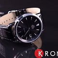 Лаконичный тёмный циферблат с серебристыми стрелками и индексами гармонично сочетается с чёрным ремешком из натуральной кожи, часы станут идеальным вариантом для делового мужчины. Механизм собственного производства заводится от движений руки владельца, позволяя забыть о необходимости постоянного завода. Минеральное стекло устойчиво к образованию царапин. Водостойкость 50 метров. Прозрачная задняя крышка корпуса. Апертура даты. Габариты: 41,2 x 41,2 x 12 мм.