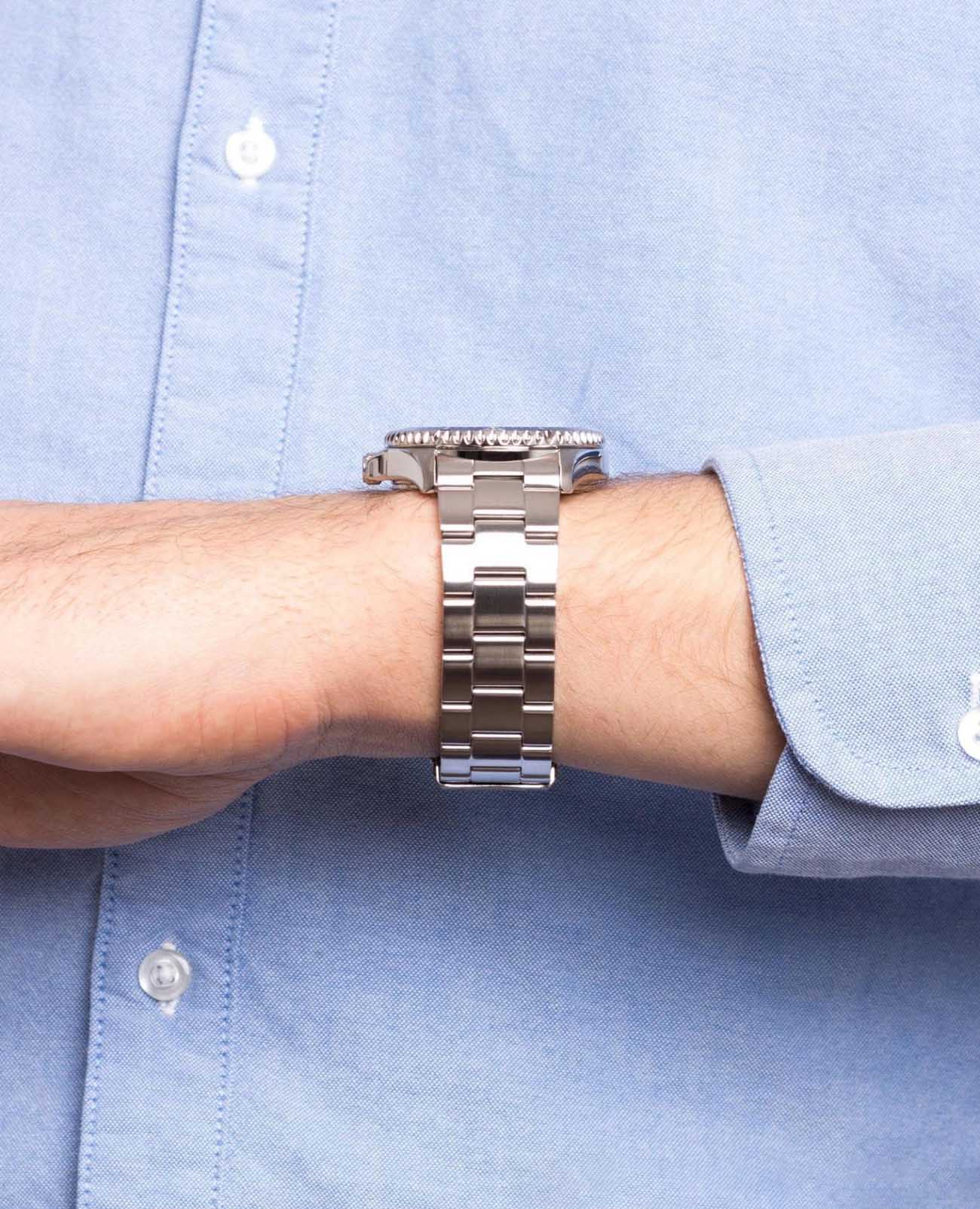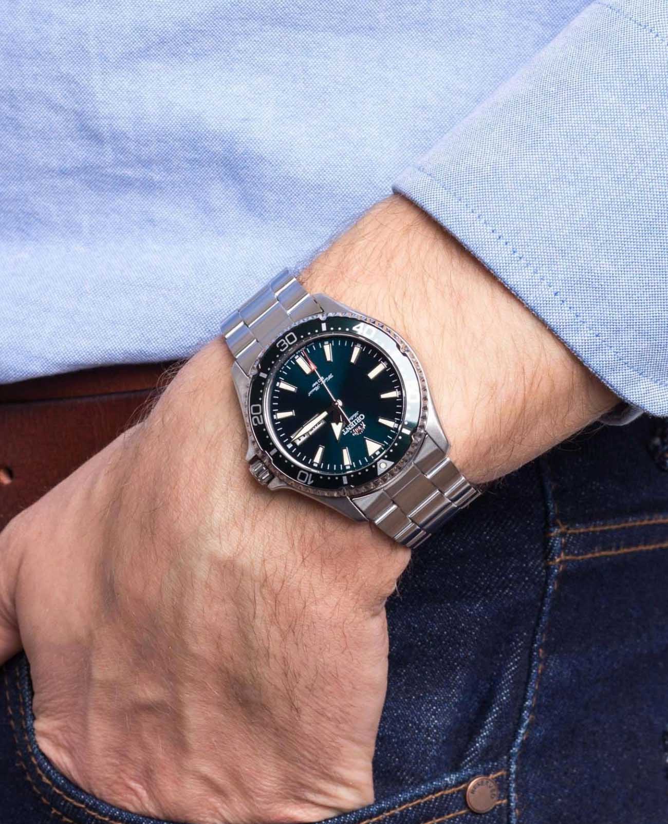 Мужские механические часы с автоподзаводом Orient Diving Sport Automatic RA-AA0004E19B (RA-AA0004E19B). Корпус и браслет часов изготовлены из нержавеющей стали. Сапфировое стеклоСапфировое стеклоПрочный и надёжный материал из кристалла сапфира синтетического происхождения, характеризующийся особой твёрдостью и устойчивостью к царапинам и повреждениям. высокой прозрачности с антибликовым покрытием. БезельБезельВнешний ободок, закрепляющий стекло. В спортивных часах так называется поворотное кольцо с делениями на циферблате, выполняет роль таймера – замеряет отрезки времени на шкале. Неподвижный безель – элемент декора. Однонаправленно вращающийся безель на дайверских часах позволяет фиксировать моменты погружения и выныривания на поверхность. с PVD-покрытиемPVDУльтратонкое покрытие наносится в технике вакуумного напыления, сочетает в себе нитрид титана особой прочности со слоем золота или оксида хрома. Несёт в себе декоративную или защитную функцию.. Окошко дня недели и даты находится в положении 3 часа. Стрелки и метки с люминесцентным покрытиемЛюминесцентное покрытиеПозволяет считывать показания времени в темноте. Производители наносят на стрелки, часовые индексы, безель или поверхность циферблата светонакопительный состав, дающий холодное свечение.. Класс водозащиты: 200 метров, позволит плавать, нырять и заниматься другими водными видами спорта. Стальной браслет на раскладной застёжкеРаскладная застёжкаТакой тип застёжки используется только на браслетах из металла. Она никогда не раскрывается полностью, происходит разделение на 2 и более частей. Раскладывающая застёжка снизит вероятность потери часов к минимуму..