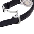 Завершающим элементом является кожаный ремешок с удобной раскладной застёжкойРаскладная застёжкаТакой тип застёжки используется только на браслетах из металла. Она никогда не раскрывается полностью, происходит разделение на 2 и более частей. Раскладывающая застёжка снизит вероятность потери часов к минимуму., обеспечивающей комфорт при носке.