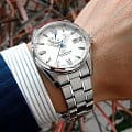 Завинчивающаяся прозрачная задняя крышка позволяет наблюдать за работой механизма. Стальной браслет на раскладной застёжкеРаскладная застёжкаТакой тип застёжки используется только на браслетах из металла. Она никогда не раскрывается полностью, происходит разделение на 2 и более частей. Раскладывающая застёжка снизит вероятность потери часов к минимуму. обеспечивает удобное и надежное крепление на руке.