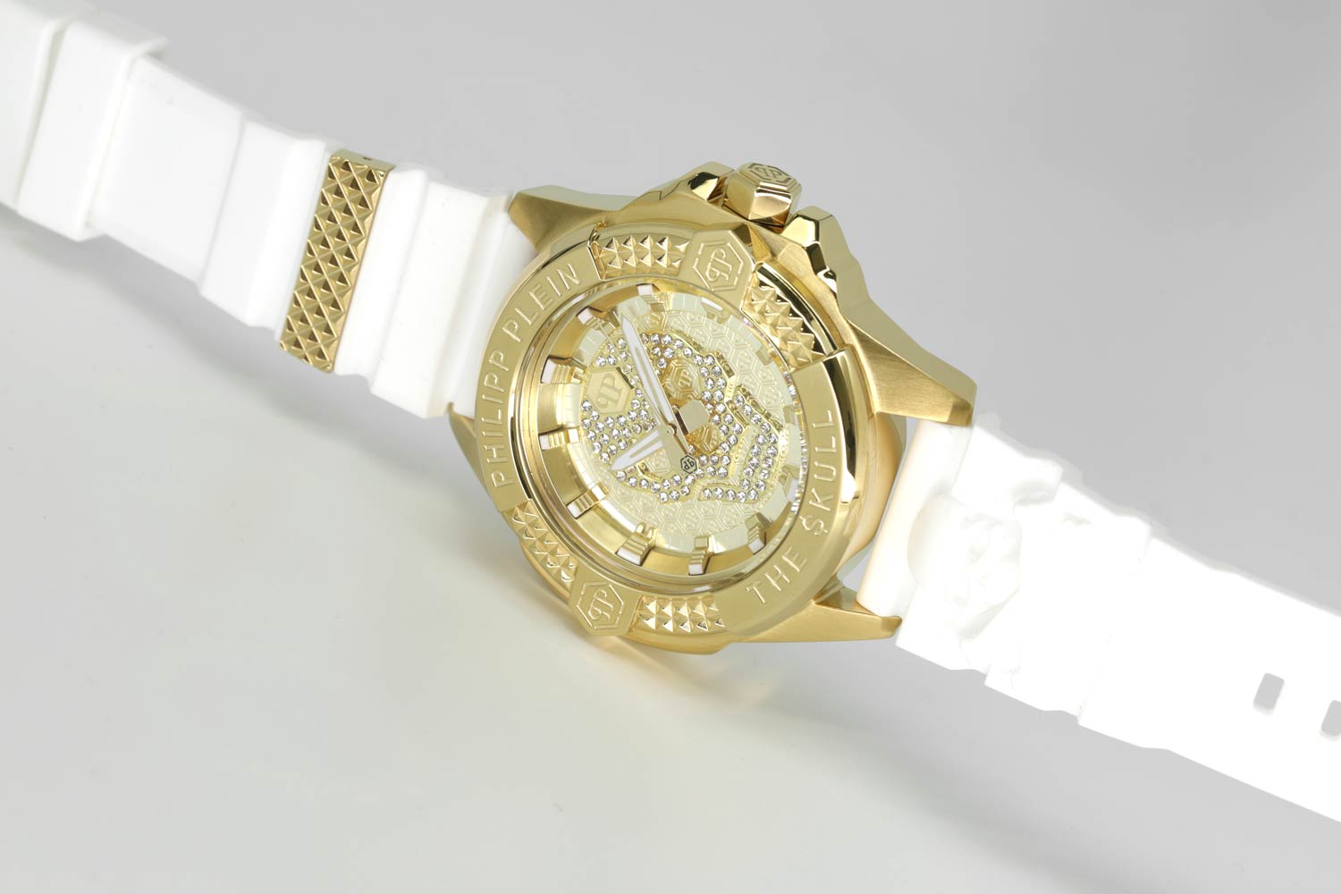 Яркие мужские часы Philipp Plein The Skull PWAAA1221, кварцевый механизм с высокой точностью. Класс водозащиты: 50 метров, позволит защитить корпус от случайных брызг или капель дождя. Корпус часов изготовлен из стали, цвета.