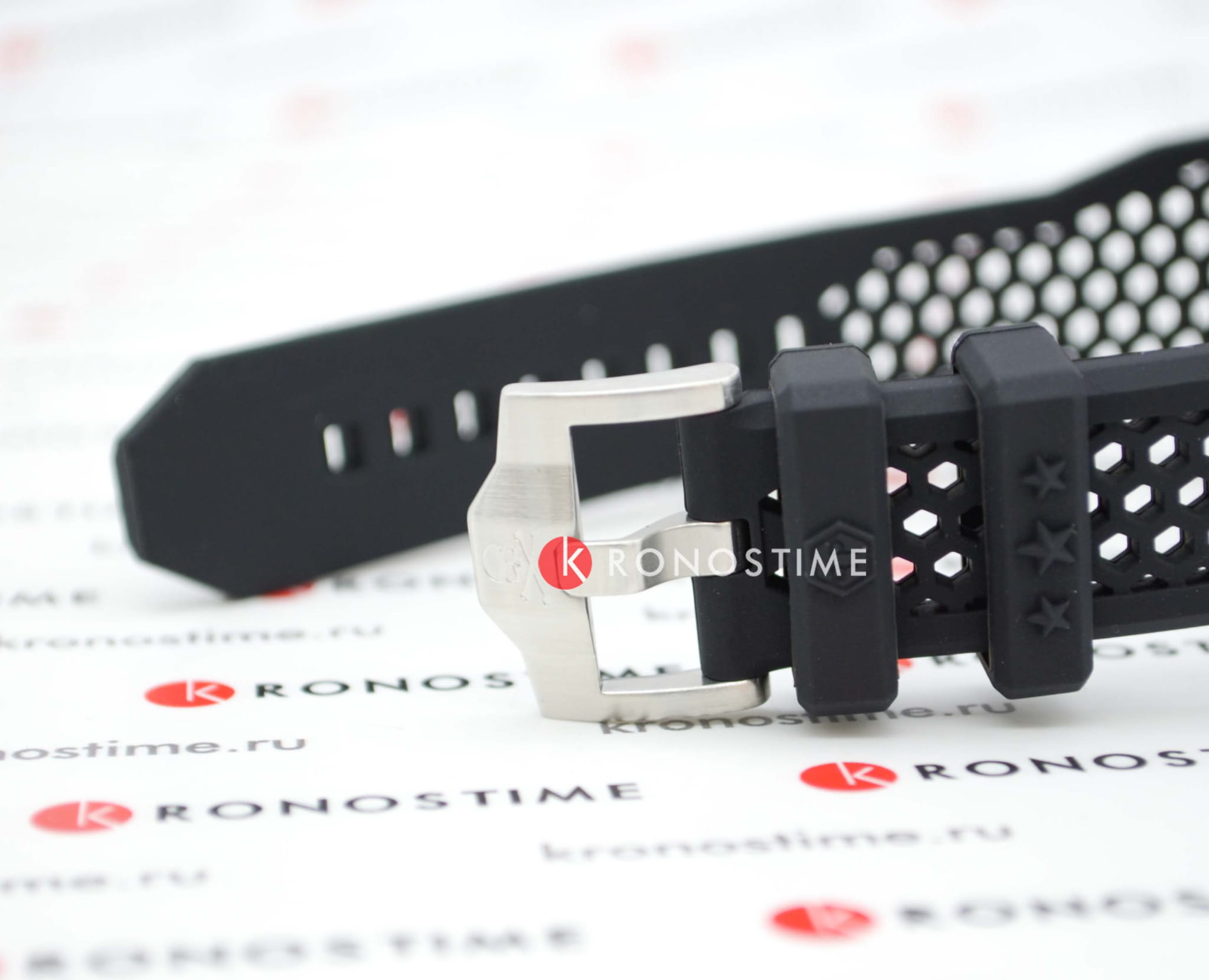 БезельБезельВнешний ободок, закрепляющий стекло. В спортивных часах так называется поворотное кольцо с делениями на циферблате, выполняет роль таймера – замеряет отрезки времени на шкале. Неподвижный безель – элемент декора. Однонаправленно вращающийся безель на дайверских часах позволяет фиксировать моменты погружения и выныривания на поверхность. с IP-покрытиемIP-покрытиеМетод ионного напыления. Демонстрирует повышенную устойчивость к истиранию, окислению и химическим веществам. Под воздействием высокого давления и температуры около 1500°C молекулы металла надёжно соединяются с частицами корпуса часов..