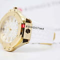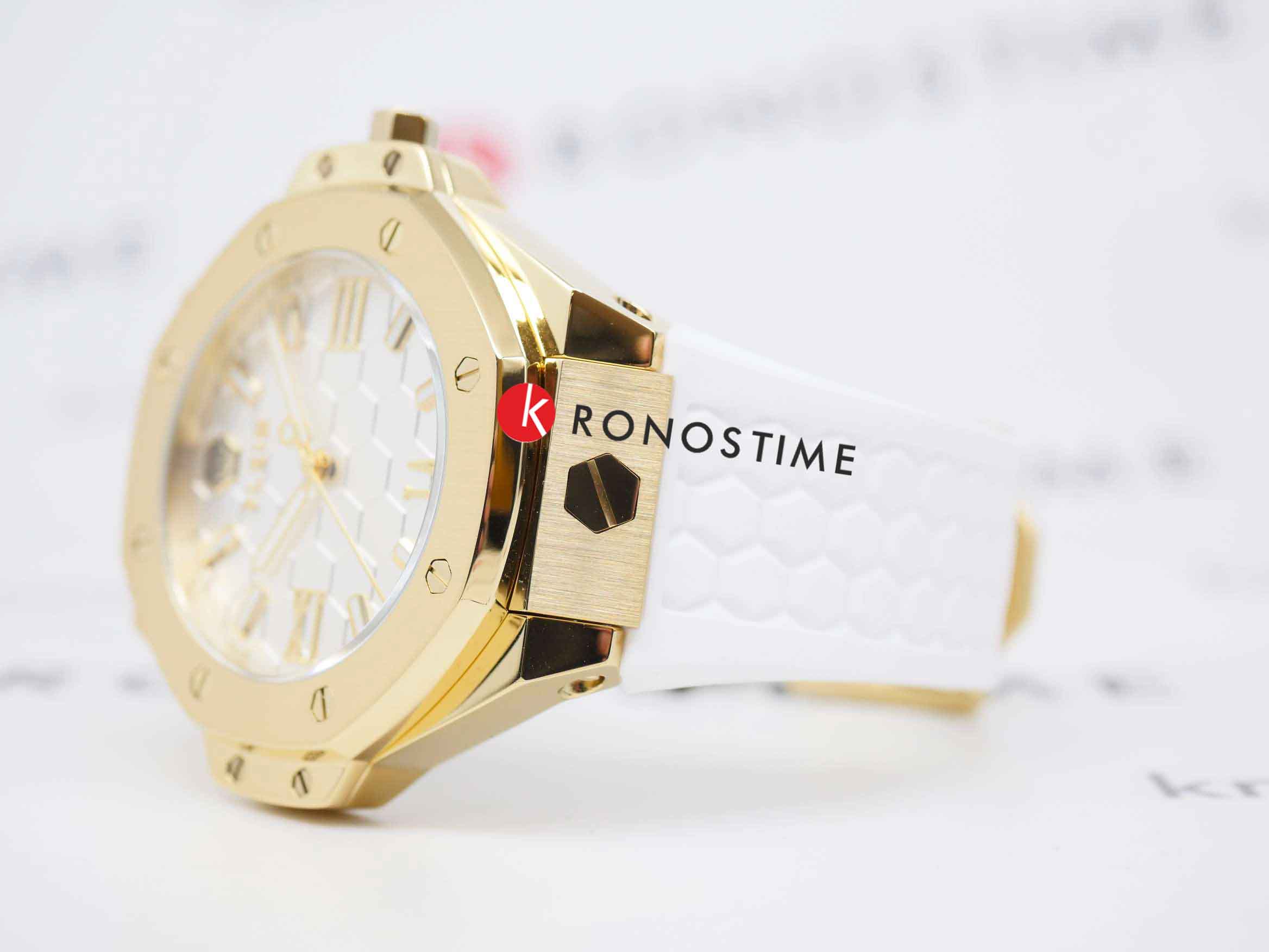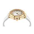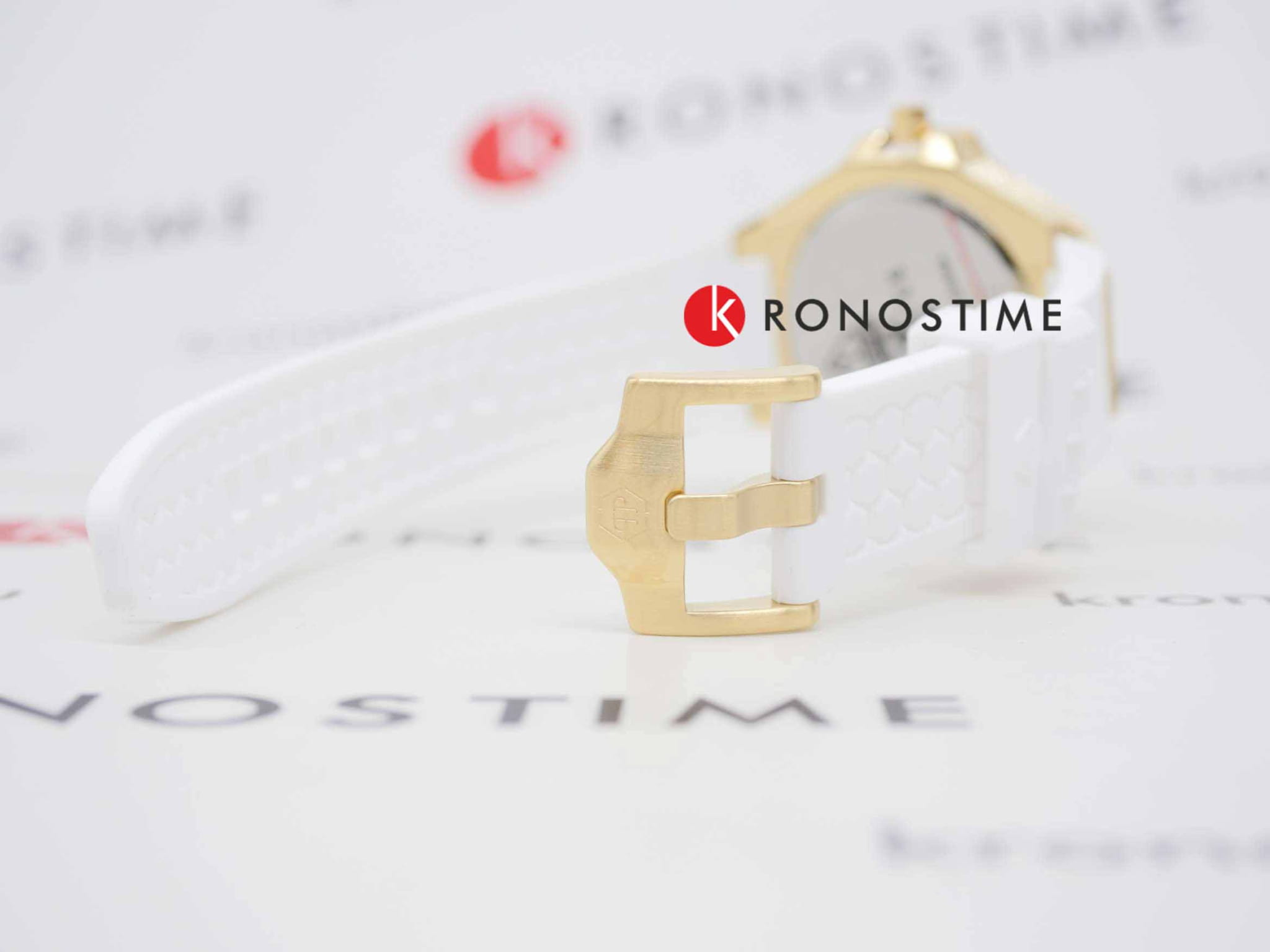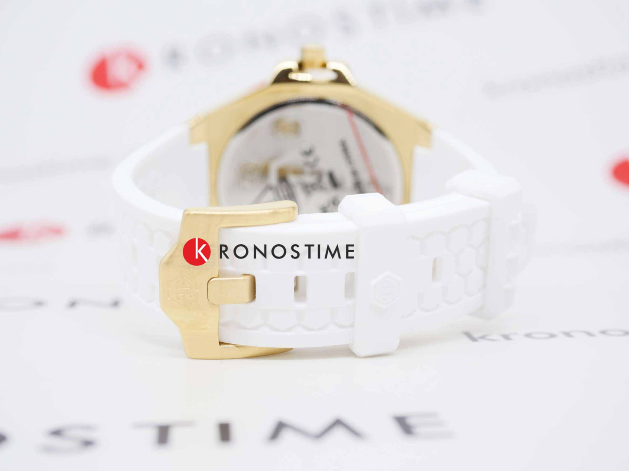 Philipp Plein Plein Lady Royal PWBDA0224 — это женские часы, сочетающие элегантность и практичность. Корпус диаметром 39 мм выполнен из нержавеющей стали с золотистым PVD-покрытиемPVDУльтратонкое покрытие наносится в технике вакуумного напыления, сочетает в себе нитрид титана особой прочности со слоем золота или оксида хрома. Несёт в себе декоративную или защитную функцию., что придаёт часам роскошный вид. Минеральное стеклоМинеральное стеклоМинеральное стекло представляет собой искусственно выращенный минерал кварца. Такое стекло отличается особой устойчивостью к повреждениям и царапинам. Уступает по некоторым качествам сапфировому стеклу. защищает циферблат от царапин и повреждений, сохраняя его безупречный внешний вид. Белый циферблат с римскими цифрами подчёркивает классический стиль. Часы оснащены кварцевым механизмом, который обеспечивает точность хода. Водозащита до 5 ATM (50 метров) позволяет использовать часы в повседневной жизни. Ремешок выполнен из белого силикона, обеспечивая комфортное ношение. Застёжка с классической пряжкой гарантирует надёжную фиксацию. Ширина ремешка 20 мм идеально гармонирует с размером корпуса, завершая изысканный образ.