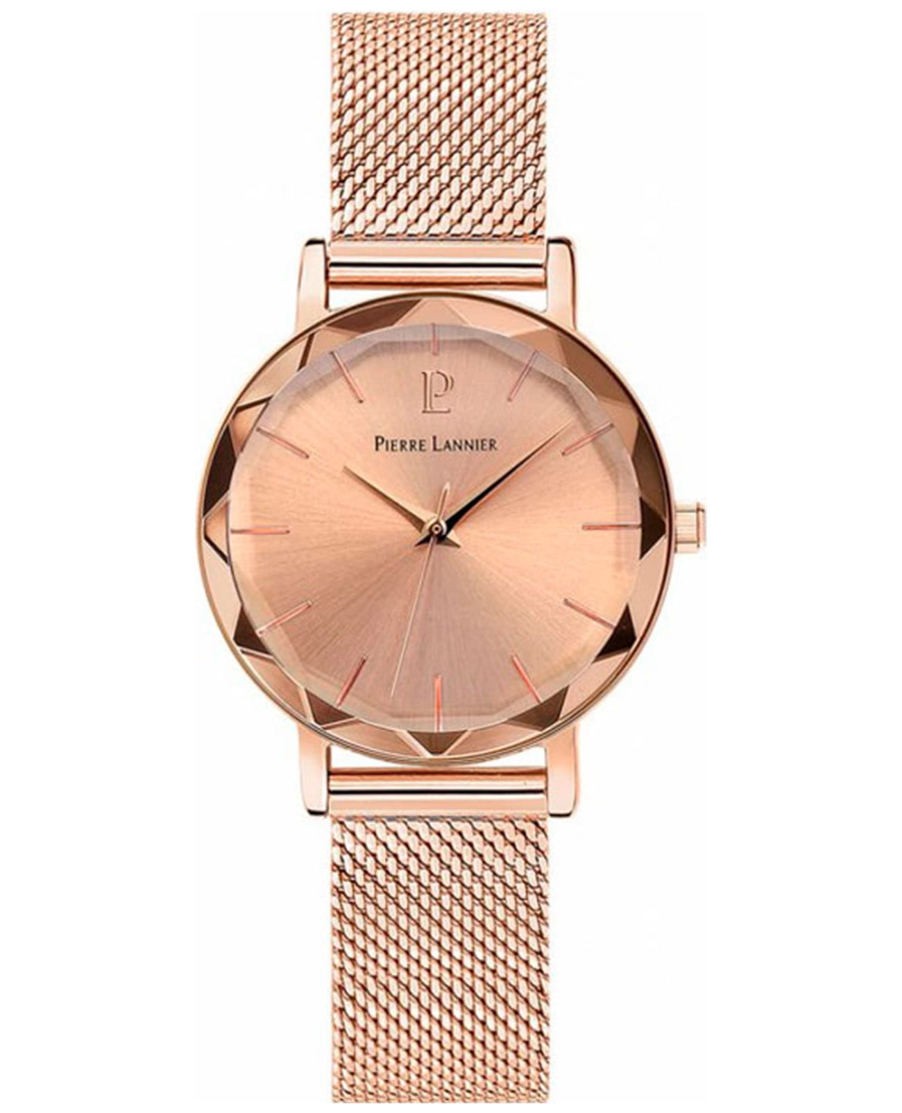 Женские кварцевые часы Pierre Lannier Multiples 010P958. Центральные часовая,минутная и секундная стрелки. Золотистый циферблат. Круглый корпус выполнен из полированной нержавеющей стали с фактурой по безелюБезельВнешний ободок, закрепляющий стекло. В спортивных часах так называется поворотное кольцо с делениями на циферблате, выполняет роль таймера – замеряет отрезки времени на шкале. Неподвижный безель – элемент декора. Однонаправленно вращающийся безель на дайверских часах позволяет фиксировать моменты погружения и выныривания на поверхность. с IP-покрытиемIP-покрытиеМетод ионного напыления. Демонстрирует повышенную устойчивость к истиранию, окислению и химическим веществам. Под воздействием высокого давления и температуры около 1500°C молекулы металла надёжно соединяются с частицами корпуса часов.. Стальной браслет выполнен в технике миланского плетения, раскладная застёжкаРаскладная застёжкаТакой тип застёжки используется только на браслетах из металла. Она никогда не раскрывается полностью, происходит разделение на 2 и более частей. Раскладывающая застёжка снизит вероятность потери часов к минимуму.. Прочное минеральное стеклоМинеральное стеклоМинеральное стекло представляет собой искусственно выращенный минерал кварца. Такое стекло отличается особой устойчивостью к повреждениям и царапинам. Уступает по некоторым качествам сапфировому стеклу., устойчивое к мелким механическим повреждениям. Водостойкость: 50 метров, позволит защитить корпус от случайных брызг или капель дождя.