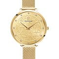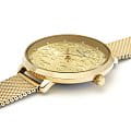 Женские кварцевые часы Pierre Lannier Eolia 041K548. Минеральное стеклоМинеральное стеклоМинеральное стекло представляет собой искусственно выращенный минерал кварца. Такое стекло отличается особой устойчивостью к повреждениям и царапинам. Уступает по некоторым качествам сапфировому стеклу. устойчивое к мелким механическим повреждениям. Центральные часовая и минутная стрелки. Золотистый циферблат украшен кристаллами. Круглый корпус выполнен из нержавеющей стали с IP-покрытиемIP-покрытиеМетод ионного напыления. Демонстрирует повышенную устойчивость к истиранию, окислению и химическим веществам. Под воздействием высокого давления и температуры около 1500°C молекулы металла надёжно соединяются с частицами корпуса часов. цвета желтого золота. Диаметр корпуса 33 мм. Стальной браслет с покрытием выполнен в технике миланского плетения, раскладная застёжкаРаскладная застёжкаТакой тип застёжки используется только на браслетах из металла. Она никогда не раскрывается полностью, происходит разделение на 2 и более частей. Раскладывающая застёжка снизит вероятность потери часов к минимуму.. Водозащита WR 50.