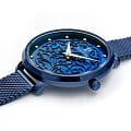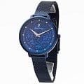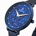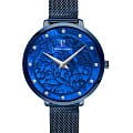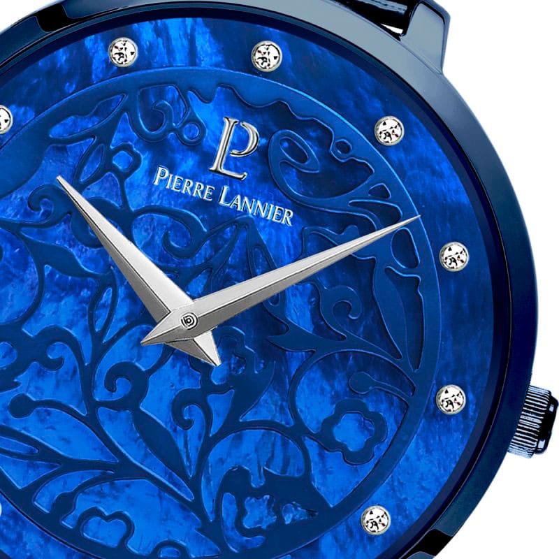 Женские кварцевые часы Pierre Lannier Eolia 045L968. Минеральное стеклоМинеральное стеклоМинеральное стекло представляет собой искусственно выращенный минерал кварца. Такое стекло отличается особой устойчивостью к повреждениям и царапинам. Уступает по некоторым качествам сапфировому стеклу. устойчивое к мелким механическим повреждениям. Центральные часовая и минутная стрелки. Синий перламутровый циферблат с цветочным узором украшен кристаллами. Круглый корпус выполнен из нержавеющей стали с синим IP-покрытиемIP-покрытиеМетод ионного напыления. Демонстрирует повышенную устойчивость к истиранию, окислению и химическим веществам. Под воздействием высокого давления и температуры около 1500°C молекулы металла надёжно соединяются с частицами корпуса часов.. Диаметр корпуса 33 мм. Стальной браслет с покрытием выполнен в технике миланского плетения, раскладная застёжкаРаскладная застёжкаТакой тип застёжки используется только на браслетах из металла. Она никогда не раскрывается полностью, происходит разделение на 2 и более частей. Раскладывающая застёжка снизит вероятность потери часов к минимуму.. Водостойкость WR 50 (мытье рук, дождь).