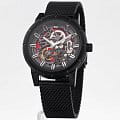Мужские механические часы с автоподзаводом Pierre Lannier Automatic 321C438. Минеральное стеклоМинеральное стеклоМинеральное стекло представляет собой искусственно выращенный минерал кварца. Такое стекло отличается особой устойчивостью к повреждениям и царапинам. Уступает по некоторым качествам сапфировому стеклу. устойчивое к мелким механическим повреждениям. Центральные часовая, минутная и секундная стрелки. Корпус и браслет выполнены из нержавеющей стали с IP-покрытиемIP-покрытиеМетод ионного напыления. Демонстрирует повышенную устойчивость к истиранию, окислению и химическим веществам. Под воздействием высокого давления и температуры около 1500°C молекулы металла надёжно соединяются с частицами корпуса часов.. Водостойкость: 50 метров, позволит защитить корпус от случайных брызг или капель дождя. Стрелки с люминесцентным покрытиемЛюминесцентное покрытиеПозволяет считывать показания времени в темноте. Производители наносят на стрелки, часовые индексы, безель или поверхность циферблата светонакопительный состав, дающий холодное свечение.. Черный скелетонизированный циферблат. Браслет на раскладной застёжкеРаскладная застёжкаТакой тип застёжки используется только на браслетах из металла. Она никогда не раскрывается полностью, происходит разделение на 2 и более частей. Раскладывающая застёжка снизит вероятность потери часов к минимуму.. Прозрачная задняя крышка.