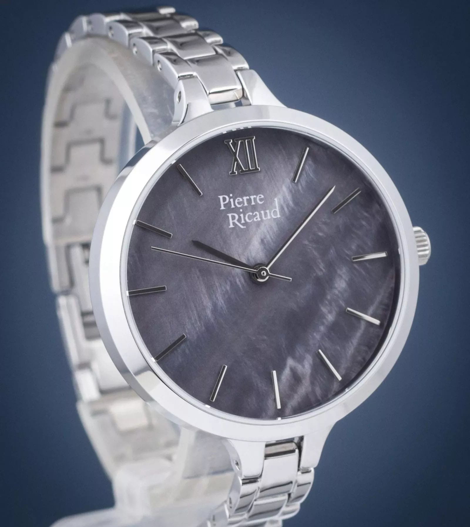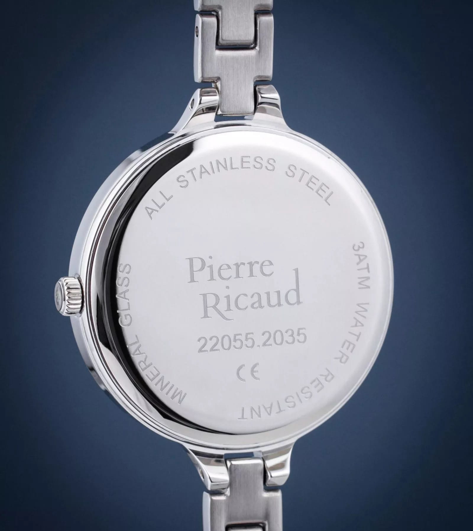 Женские кварцевые наручные часы с минеральным стекломМинеральное стеклоМинеральное стекло представляет собой искусственно выращенный минерал кварца. Такое стекло отличается особой устойчивостью к повреждениям и царапинам. Уступает по некоторым качествам сапфировому стеклу. Pierre Ricaud P22055.516ZQ, кварцевый механизм с высокой точностью. Класс водозащиты: 30 метров, позволит защитить корпус от случайных брызг или капель дождя. Корпус часов изготовлен из стали.  Стальной браслет на ювелирной застёжке.