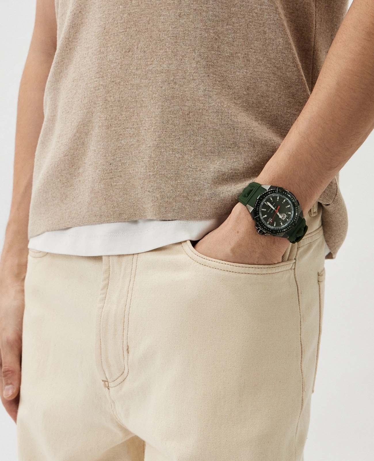 Часы оснащены силиконовым ремешком с застёжкой на пряжку, что обеспечивает удобство ношения и надёжную фиксацию на запястье.