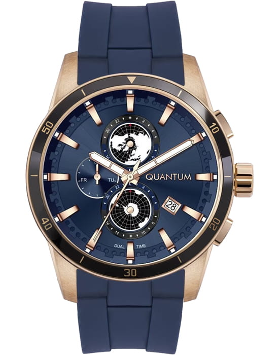 Мужские часы c хронографомХронографФункция позволяет измерять отрезки времени с особой точностью: часы, минуты, секунды. Верным признаком хронографа является наличие на циферблате 3 дополнительных окошек-счётчиков. Quantum Adrenaline ADG991.499, кварцевый механизм с высокой точностью. Минеральное стеклоМинеральное стеклоМинеральное стекло представляет собой искусственно выращенный минерал кварца. Такое стекло отличается особой устойчивостью к повреждениям и царапинам. Уступает по некоторым качествам сапфировому стеклу. устойчивое к появлению царапин, обладающее высокой прозрачностью. Класс водозащиты: 50 метров, позволит защитить корпус от случайных брызг или капель дождя. Корпус часов изготовлен из нержавеющей стали с PVD-покрытиемPVDУльтратонкое покрытие наносится в технике вакуумного напыления, сочетает в себе нитрид титана особой прочности со слоем золота или оксида хрома. Несёт в себе декоративную или защитную функцию.. Каучуковый ремешок. Окошко даты находится в положении 4 часов. Стрелки и метки с люминесцентным покрытиемЛюминесцентное покрытиеПозволяет считывать показания времени в темноте. Производители наносят на стрелки, часовые индексы, безель или поверхность циферблата светонакопительный состав, дающий холодное свечение..
