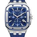 Мужские кварцевые часы Quantum из коллекции Hunter — крупные прямоугольные часы с ярким синим акцентом и функциональным хронографом. Корпус прямоугольный, из нержавеющей стали, размером 44 мм. БезельБезельВнешний ободок, закрепляющий стекло. В спортивных часах так называется поворотное кольцо с делениями на циферблате, выполняет роль таймера – замеряет отрезки времени на шкале. Неподвижный безель – элемент декора. Однонаправленно вращающийся безель на дайверских часах позволяет фиксировать моменты погружения и выныривания на поверхность. из нержавеющей стали с частичным PVD-покрытиемPVDУльтратонкое покрытие наносится в технике вакуумного напыления, сочетает в себе нитрид титана особой прочности со слоем золота или оксида хрома. Несёт в себе декоративную или защитную функцию.. Циферблат — синий с функциями хронографаХронографФункция позволяет измерять отрезки времени с особой точностью: часы, минуты, секунды. Верным признаком хронографа является наличие на циферблате 3 дополнительных окошек-счётчиков. и окошком даты. Стекло — минеральноеМинеральное стеклоМинеральное стекло представляет собой искусственно выращенный минерал кварца. Такое стекло отличается особой устойчивостью к повреждениям и царапинам. Уступает по некоторым качествам сапфировому стеклу. с антибликовым покрытием. Механизм — японский кварцевый Seiko. Водонепроницаемость 100 м. Ремешок — синий силиконовый на стандартной застёжке. Идеальный выбор для тех, кто ценит турецкий дизайн и спортивный стиль.