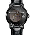 Оригинальный циферблат называют совершенством линий и лаконичности, необычное исполнение которого никого не оставляет равнодушным. Индикация времени занимает не всё пространство, секундный счётчик вынесен отдельно, серединка оставлена прозрачной. Наручные часы оснащаются автоматическим механизмом ETA 2899-S2 с запасом хода 42 часа, украшенным традиционным узором «женевские волны». Скелетонизированная задняя крышка. Антибликовое покрытие сапфирового стекла. Корпус и безельБезельВнешний ободок, закрепляющий стекло. В спортивных часах так называется поворотное кольцо с делениями на циферблате, выполняет роль таймера – замеряет отрезки времени на шкале. Неподвижный безель – элемент декора. Однонаправленно вращающийся безель на дайверских часах позволяет фиксировать моменты погружения и выныривания на поверхность. из высокотехнологичной керамикиВысокотехнологичная керамикаИнновационный запатентованный Rado материал с гладкой или матовой поверхностью. Керамика за счёт кристаллической структуры обладает повышенной устойчивостью от возникновения царапин. Материал способен принимать температуру тела человека, обеспечивая невероятный комфорт при ношении.. Ремешок из натуральной кожи. Апертура даты. Диаметр корпуса: 43 мм.