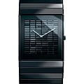 Мужские швейцарские часы Rado Ceramica R21718702, кварцевый механизм с высокой точностью. Сапфировое стеклоСапфировое стеклоПрочный и надёжный материал из кристалла сапфира синтетического происхождения, характеризующийся особой твёрдостью и устойчивостью к царапинам и повреждениям. устойчивое к появлению царапин, обладающее высокой прозрачностью. Корпус часов изготовлен из керамики. Класс водозащиты: 30 метров, позволит защитить корпус от случайных брызг или капель дождя. Керамический браслет на раскладной застёжкеРаскладная застёжкаТакой тип застёжки используется только на браслетах из металла. Она никогда не раскрывается полностью, происходит разделение на 2 и более частей. Раскладывающая застёжка снизит вероятность потери часов к минимуму.. На циферблате 102 прямоугольных бриллианта общим весом 7,49 карата.