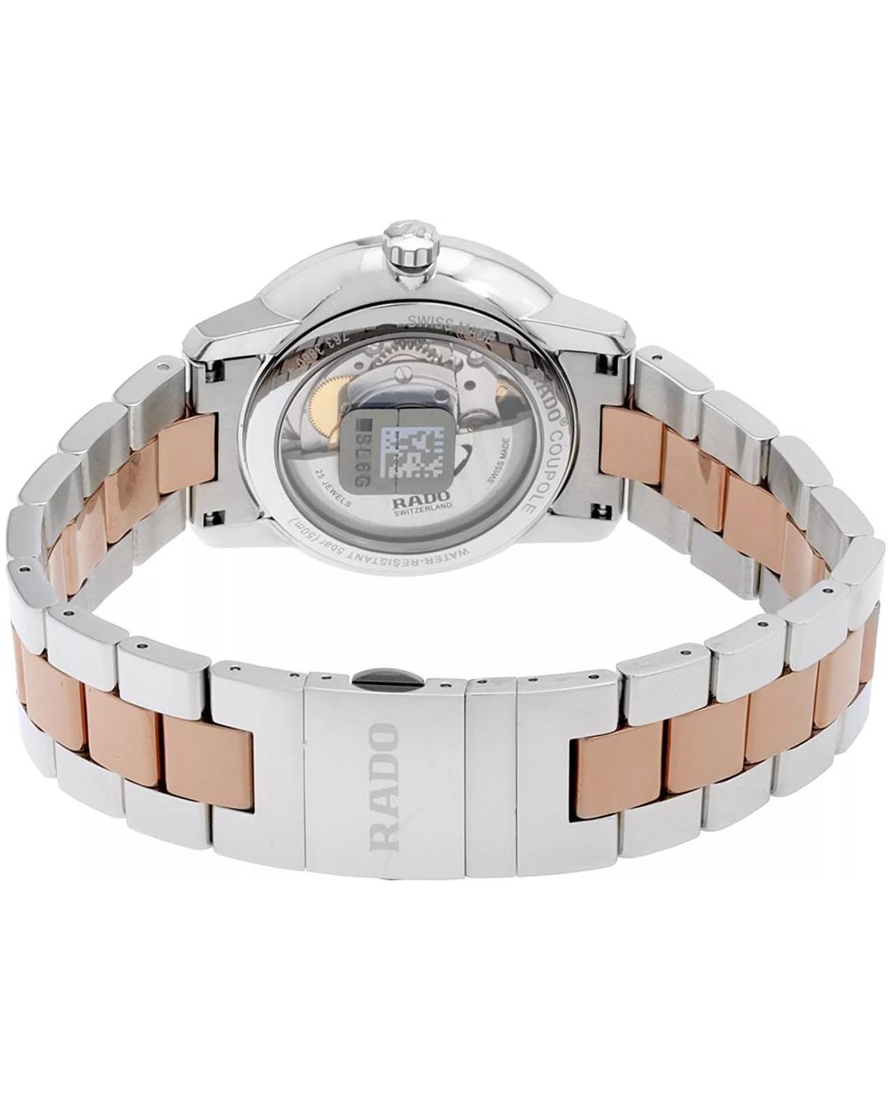 Мужские швейцарские механические часы с автоподзаводом Rado Coupole R22860722. Корпус часов изготовлен из нержавеющей стали. Сапфировое стеклоСапфировое стеклоПрочный и надёжный материал из кристалла сапфира синтетического происхождения, характеризующийся особой твёрдостью и устойчивостью к царапинам и повреждениям. устойчивое к мелким механическим повреждениям. Стальной браслет с частичным PVD-покрытиемPVDУльтратонкое покрытие наносится в технике вакуумного напыления, сочетает в себе нитрид титана особой прочности со слоем золота или оксида хрома. Несёт в себе декоративную или защитную функцию. на раскладной застёжкеРаскладная застёжкаТакой тип застёжки используется только на браслетах из металла. Она никогда не раскрывается полностью, происходит разделение на 2 и более частей. Раскладывающая застёжка снизит вероятность потери часов к минимуму.. Класс водозащиты: 50 метров, позволит защитить корпус от случайных брызг или капель дождя. Окошко даты находится в положении 3 часа. Циферблат инкрустирован бриллиантами.