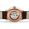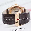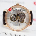 Аксессуар в минималистичном исполнении привлекает плавными линиями, отсутствием лишних деталей, эксклюзивным дизайном. Светлый циферблат имеет 3 окошка, сквозь которые можно просматривать движение деталей автоматического калибра ETA C07.631 с запасом хода до 80 часов. Прозрачная задняя крышка корпуса. Нержавеющая сталь 316L. Винтажный корпус купольной формы. PVD-покрытиеPVDУльтратонкое покрытие наносится в технике вакуумного напыления, сочетает в себе нитрид титана особой прочности со слоем золота или оксида хрома. Несёт в себе декоративную или защитную функцию. "розовое золото". Стильный ремешок из натуральной кожи с тиснением под крокодиловую кожу. Стекло из сапфира с антибликовым покрытием. Водостойкость 5 бар. Диаметр корпуса: 41 мм.