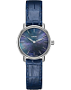 Минималистичная модель отличается компактным перламутровым циферблатом, аксессуар уместно смотрится с любым образом. Наручные часы показывают время с повышенной точностью благодаря швейцарскому кварцевому механизму ETA E63.111. Для изготовления корпуса была выбрана сталь 316L с устойчивостью к коррозии. Водонепроницаемость до 5 бар. Сапфировое стекло с антибликовой обработкой. Синий ремешок из натуральной кожи. . Диаметр корпуса: 27 мм.