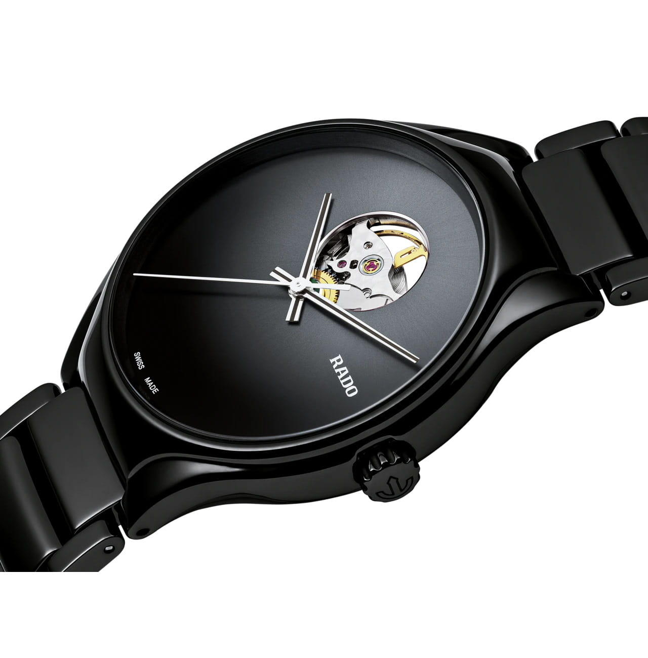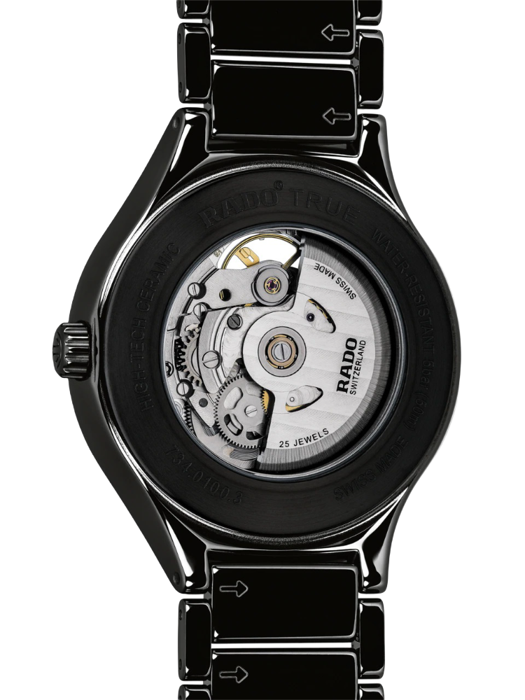 Наручные часы с минималистичным циферблатом выполнены в классическом дизайне, что делает модель актуальным вариантом для делового, повседневного, вечернего стиля одежды. Швейцарский пружинный калибр с автоподзаводом ETA C07.631 отличается увеличенным запасом хода до 80 часов. Сквозь круглое окошко в циферблате прослеживается плавное движение деталей и шестерёнок механизма, украшенного узором «жемчужное зернение». Аксессуар полностью выполнен высокотехнологичной керамикиВысокотехнологичная керамикаИнновационный запатентованный Rado материал с гладкой или матовой поверхностью. Керамика за счёт кристаллической структуры обладает повышенной устойчивостью от возникновения царапин. Материал способен принимать температуру тела человека, обеспечивая невероятный комфорт при ношении., что обеспечивает комфортное ношение. Сапфировое стекло имеет антибликовое покрытие, уменьшающее отражение света в 10 раз для лучшей читаемости показателей. Водостойкость WR 50 позволяет часам выдерживать дождь, душ, мойку машины. Диаметр корпуса: 40 мм.