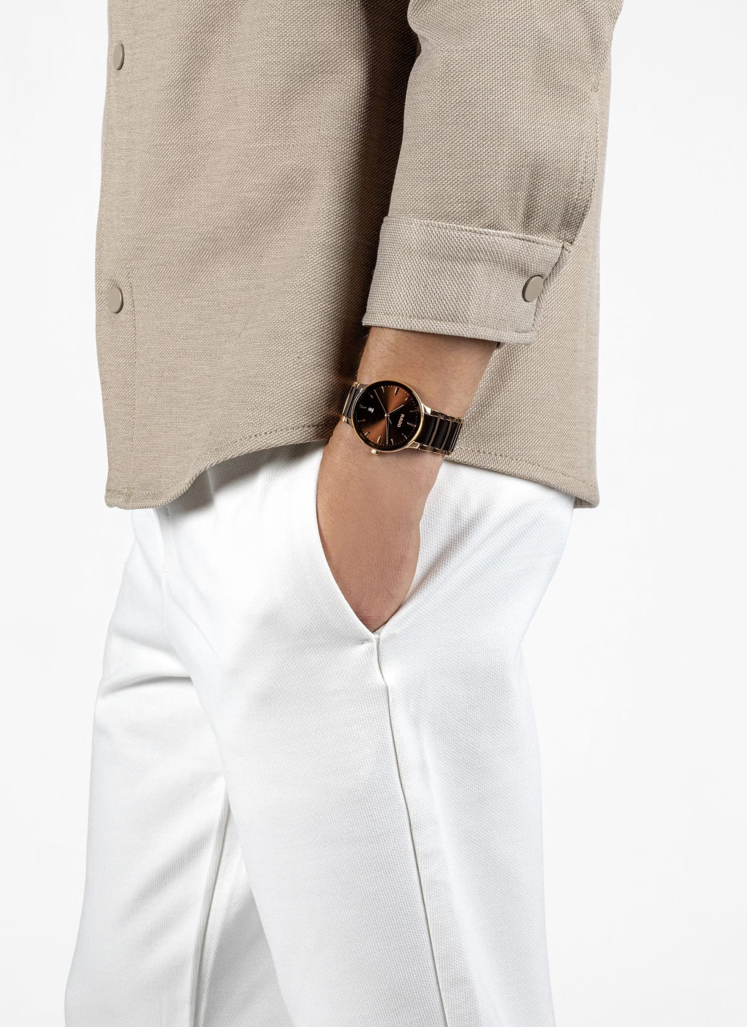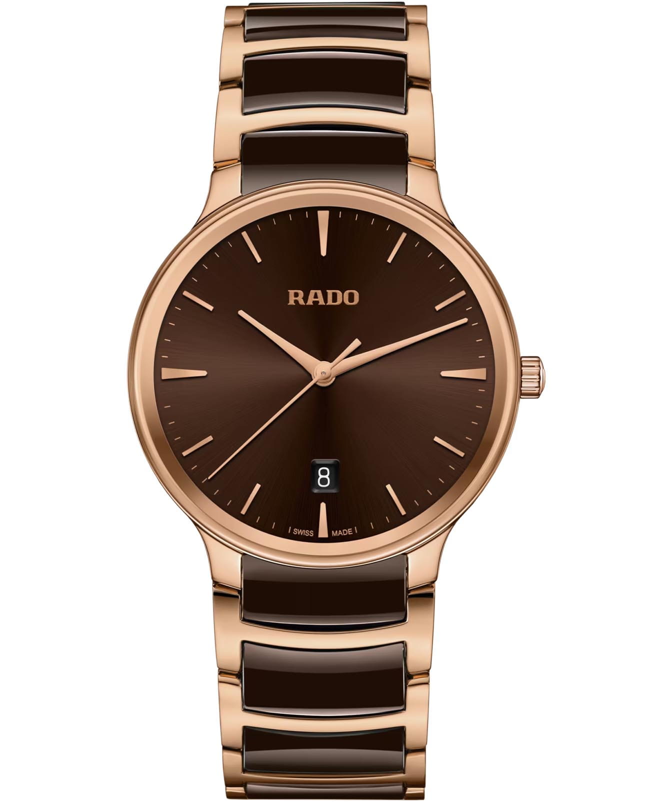 Швейцарские часы с надёжным кварцевым механизмом Rado Centrix R30023302. Корпус часов изготовлен из нержавеющей стали. Браслет из стали и высокотехнологичной керамикиВысокотехнологичная керамикаИнновационный запатентованный Rado материал с гладкой или матовой поверхностью. Керамика за счёт кристаллической структуры обладает повышенной устойчивостью от возникновения царапин. Материал способен принимать температуру тела человека, обеспечивая невероятный комфорт при ношении. на раскладной застёжкеРаскладная застёжкаТакой тип застёжки используется только на браслетах из металла. Она никогда не раскрывается полностью, происходит разделение на 2 и более частей. Раскладывающая застёжка снизит вероятность потери часов к минимуму.. Сапфировое стеклоСапфировое стеклоПрочный и надёжный материал из кристалла сапфира синтетического происхождения, характеризующийся особой твёрдостью и устойчивостью к царапинам и повреждениям. устойчивое к мелким механическим повреждениям. Класс водозащиты: 50 метров, позволит защитить корпус от случайных брызг или капель дождя. Окошко даты находится в положении 6 часов.
