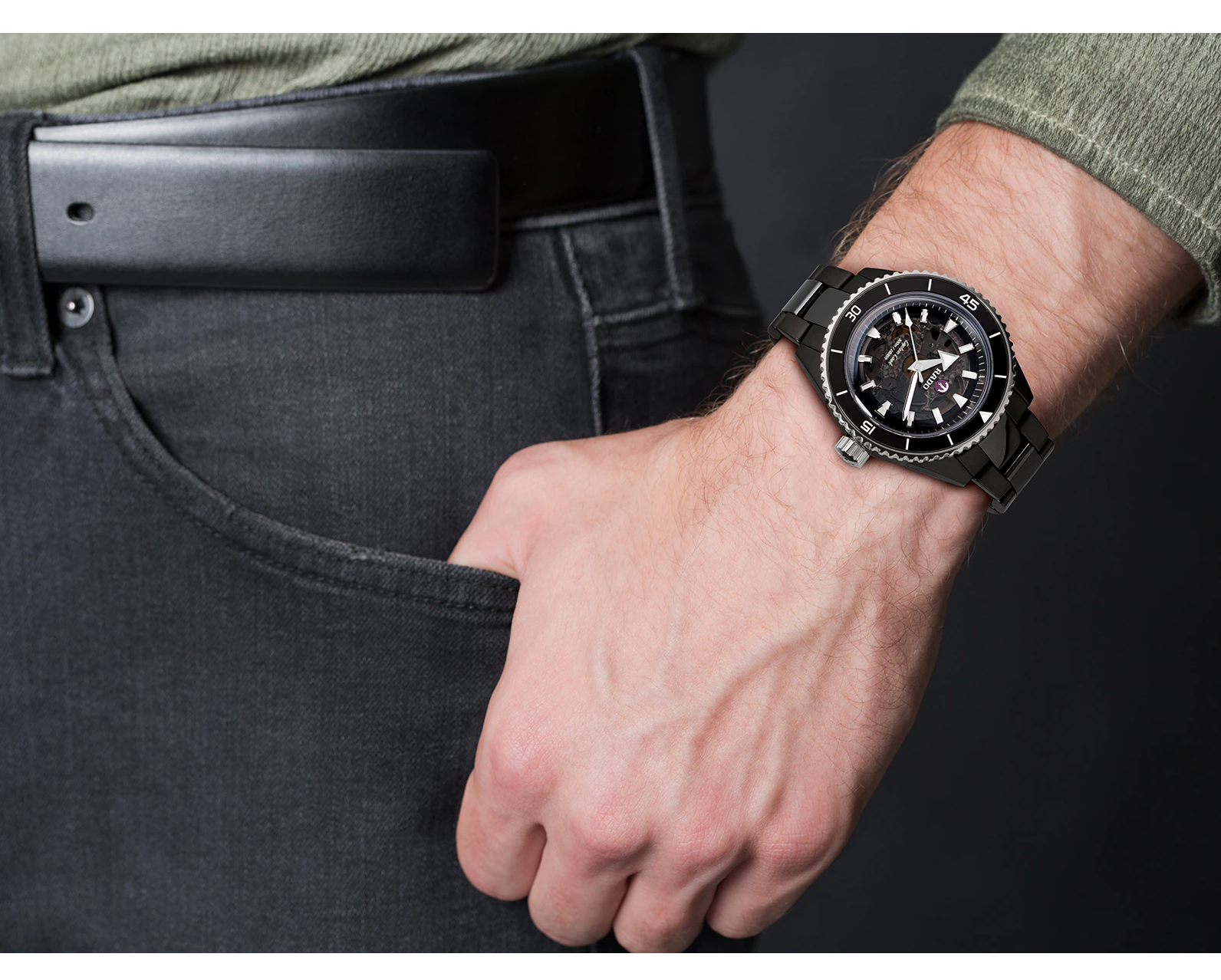 Премиальная модель обладает винтажным характером, чёрный циферблат обращает наше внимание на оригинальные стрелки в виде меча и стрелы. Часы обладают высокими показателями водонепроницаемости - сохранение герметичности до 20 бар, что стало возможным благодаря завинчивающейся задней крышке и заводной головке. Автоподзавод. Антибликовая обработка сапфирового стекла. Корпус из керамики, безельБезельВнешний ободок, закрепляющий стекло. В спортивных часах так называется поворотное кольцо с делениями на циферблате, выполняет роль таймера – замеряет отрезки времени на шкале. Неподвижный безель – элемент декора. Однонаправленно вращающийся безель на дайверских часах позволяет фиксировать моменты погружения и выныривания на поверхность. из высокотехнологичной керамикиВысокотехнологичная керамикаИнновационный запатентованный Rado материал с гладкой или матовой поверхностью. Керамика за счёт кристаллической структуры обладает повышенной устойчивостью от возникновения царапин. Материал способен принимать температуру тела человека, обеспечивая невероятный комфорт при ношении.. Прочный керамический браслет. Отображение числа. Диаметр корпуса: 43 мм.
