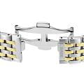 Универсальные механические часы с автоподзаводом Rado из коллекции Florence — это воплощение швейцарской точности и элегантности. Корпус диаметром 39 мм и толщиной 11 мм выполнен из нержавеющей стали. Циферблат золотистого цвета с рельефным узором оформлен накладными индексами и подвижным якорем бренда — символом Rado. Циферблат защищён сапфировым стекломСапфировое стеклоПрочный и надёжный материал из кристалла сапфира синтетического происхождения, характеризующийся особой твёрдостью и устойчивостью к царапинам и повреждениям. с антибликовым покрытиемАнтибликовое покрытиеСлой оксида металла в 0,13-0,3 микрон, благодаря которому стекло часов не бликует и не отражает свет. Антибликовое покрытие уменьшает отражение света в 10 раз, обеспечивая отличную читаемость показателей циферблата., которое одновременно выполняет функцию безеляБезельВнешний ободок, закрепляющий стекло. В спортивных часах так называется поворотное кольцо с делениями на циферблате, выполняет роль таймера – замеряет отрезки времени на шкале. Неподвижный безель – элемент декора. Однонаправленно вращающийся безель на дайверских часах позволяет фиксировать моменты погружения и выныривания на поверхность. с PVD-покрытиемPVDУльтратонкое покрытие наносится в технике вакуумного напыления, сочетает в себе нитрид титана особой прочности со слоем золота или оксида хрома. Несёт в себе декоративную или защитную функцию. жёлтого золота. Механизм — автоматический калибр R763 с пружиной Nivachron™Nivachron™Специально разработанный инновационный сплав Nivachron™ повышает устойчивость часов к воздействию магнитных полей., отрегулированный в пяти положениях, с запасом хода 80 часов. Окошко даты расположено в положении 3 часов. Прозрачная задняя крышка с сапфировым стеклом позволяет наблюдать за работой механизма. Завинчивающаяся коронка обеспечивает дополнительную защиту. Часы оснащены двухцветным стальным браслетом с PVD-покрытиемPVDУльтратонкое покрытие наносится в технике вакуумного напыления, сочетает в себе нитрид титана особой прочности со слоем золота или оксида хрома. Несёт в себе декоративную или защитную функцию. жёлтого золота и трёхсекционной застёжкой из нержавеющей стали. Водонепроницаемость 50 м позволяет использовать часы в повседневных условиях. Идеальный выбор для тех, кто ценит мастерство, стиль и универсальность.
