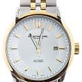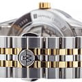 Двухцветный браслет из нержавеющей стали с жёлтым PVD-покрытиемPVDУльтратонкое покрытие наносится в технике вакуумного напыления, сочетает в себе нитрид титана особой прочности со слоем золота или оксида хрома. Несёт в себе декоративную или защитную функцию. и застёжке-бабочке с кнопкамиЗастёжка "бабочка"Такой вид застёжки дополняется предохранителями, помогающими избежать случайного раскрытия браслета. Обладают изящным исполнением.  обеспечивает комфортное ношение и надёжную фиксацию. Водозащита до 10 ATM делает часы подходящими для плавания и других водных активностей.