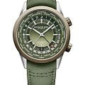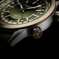 Ремешок из натуральной телячьей кожи зелёного цвета с раскладной застёжкойРаскладная застёжкаТакой тип застёжки используется только на браслетах из металла. Она никогда не раскрывается полностью, происходит разделение на 2 и более частей. Раскладывающая застёжка снизит вероятность потери часов к минимуму. и двойной системой безопасности обеспечивает комфортное ношение и надёжную фиксацию. Водозащита до 10 ATM делает модель подходящей для плавания и других водных активностей.