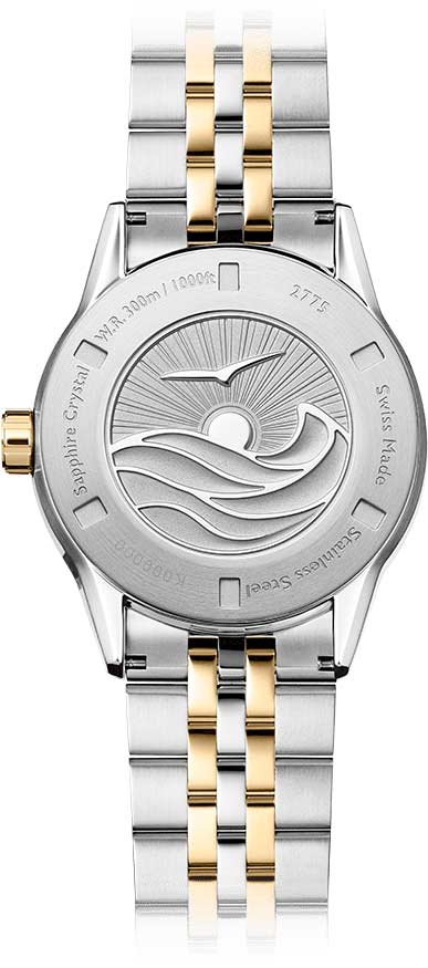 Браслет из нержавеющей стали с PVD-покрытиемPVDУльтратонкое покрытие наносится в технике вакуумного напыления, сочетает в себе нитрид титана особой прочности со слоем золота или оксида хрома. Несёт в себе декоративную или защитную функцию. на раскладной застёжкеРаскладная застёжкаТакой тип застёжки используется только на браслетах из металла. Она никогда не раскрывается полностью, происходит разделение на 2 и более частей. Раскладывающая застёжка снизит вероятность потери часов к минимуму. с двойной системой защиты, обеспечивает надёжную фиксацию и комфортное ношение. Водозащита до 30 ATM делает часы подходящими для плавания и других активностей, связанных с водой.