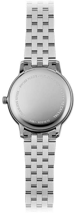 Raymond Weil Toccata (артикул 5385-ST-00659) — элегантные женские часы, сочетающие классический дизайн и функциональность. Корпус диаметром 34 мм выполнен из нержавеющей стали, что обеспечивает прочность и долговечность. Серебристый циферблат украшен римскими цифрами и синими стрелками, добавляя часам изысканности. Окошко даты на отметке «3 часа» обеспечивает удобство использования. Сапфировое стеклоСапфировое стеклоПрочный и надёжный материал из кристалла сапфира синтетического происхождения, характеризующийся особой твёрдостью и устойчивостью к царапинам и повреждениям. защищает часы от царапин, а водонепроницаемость до 50 метров делает их подходящими для повседневной носки. Надёжный кварцевый механизм гарантирует точность хода. Браслет из нержавеющей стали оснащён раскладной застёжкойРаскладная застёжкаТакой тип застёжки используется только на браслетах из металла. Она никогда не раскрывается полностью, происходит разделение на 2 и более частей. Раскладывающая застёжка снизит вероятность потери часов к минимуму. с двойной системой безопасности, что обеспечивает комфорт и надёжность при ношении.