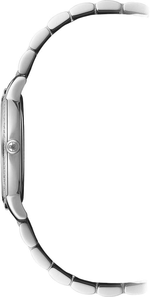 Корпус имеет круглую форму с диаметром 34 мм, что делает часы элегантным аксессуаром для женщин. Корпус украшен 80 бриллиантами 0,24К.