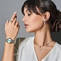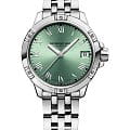 Raymond Weil Tango Classic (артикул 5960-ST-00520) — это стильные женские часы, сочетающие элегантность и функциональность. Корпус выполнен из нержавеющей стали, что обеспечивает долговечность и универсальность. Циферблат зелёного цвета с римскими цифрами создаёт эффектный и современный вид. Стрелки покрыты люминесцентным покрытиемЛюминесцентное покрытиеПозволяет считывать показания времени в темноте. Производители наносят на стрелки, часовые индексы, безель или поверхность циферблата светонакопительный состав, дающий холодное свечение., что позволяет легко считывать время даже в условиях низкой освещённости. Окошко даты расположено на отметке «3 часа» для дополнительного удобства. Сапфировое стеклоСапфировое стеклоПрочный и надёжный материал из кристалла сапфира синтетического происхождения, характеризующийся особой твёрдостью и устойчивостью к царапинам и повреждениям. защищает циферблат от царапин, а водонепроницаемость до 100 метров позволяет использовать часы в различных условиях. Надёжный кварцевый механизм обеспечивает высокую точность хода. Браслет из нержавеющей стали оснащён раскладной застёжкойРаскладная застёжкаТакой тип застёжки используется только на браслетах из металла. Она никогда не раскрывается полностью, происходит разделение на 2 и более частей. Раскладывающая застёжка снизит вероятность потери часов к минимуму. с двойной системой безопасности, обеспечивая комфорт и надёжность при ношении. Raymond Weil Tango Classic 5960-ST-00520 — это идеальное сочетание современного дизайна, практичности и швейцарского качества.