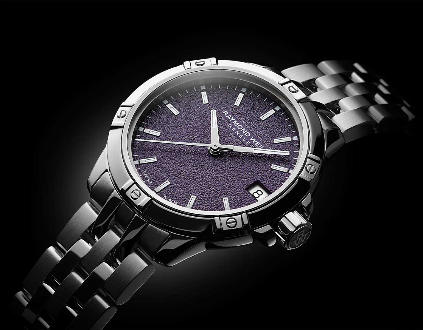 Raymond Weil Tango Classic (артикул 5960-ST-50161) — это женские часы, сочетающие стиль и практичность. Корпус выполнен из нержавеющей стали, что обеспечивает надёжность и долговечность. Циферблат насыщенного пурпурного цвета с матовой отделкой создаёт элегантный и современный вид. Стрелки покрыты люминесцентным покрытиемЛюминесцентное покрытиеПозволяет считывать показания времени в темноте. Производители наносят на стрелки, часовые индексы, безель или поверхность циферблата светонакопительный состав, дающий холодное свечение., что позволяет легко считывать время даже в условиях низкой освещённости. Окошко даты расположено на отметке «3 часа» для удобства. Сапфировое стеклоСапфировое стеклоПрочный и надёжный материал из кристалла сапфира синтетического происхождения, характеризующийся особой твёрдостью и устойчивостью к царапинам и повреждениям. с антибликовым покрытиемАнтибликовое покрытиеСлой оксида металла в 0,13-0,3 микрон, благодаря которому стекло часов не бликует и не отражает свет. Антибликовое покрытие уменьшает отражение света в 10 раз, обеспечивая отличную читаемость показателей циферблата. защищает циферблат от царапин, а водонепроницаемость до 100 метров делает часы подходящими для активного использования. Надёжный кварцевый механизм обеспечивает точность хода. Браслет из нержавеющей стали оснащён раскладной застёжкойРаскладная застёжкаТакой тип застёжки используется только на браслетах из металла. Она никогда не раскрывается полностью, происходит разделение на 2 и более частей. Раскладывающая застёжка снизит вероятность потери часов к минимуму. с двойной системой безопасности, что гарантирует комфорт и безопасность при ношении.