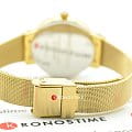 Особую роскошь представляет собой циферблат – белый перламутр по окружности украшен 12 цирконами. Уникальный фигурный безельБезельВнешний ободок, закрепляющий стекло. В спортивных часах так называется поворотное кольцо с делениями на циферблате, выполняет роль таймера – замеряет отрезки времени на шкале. Неподвижный безель – элемент декора. Однонаправленно вращающийся безель на дайверских часах позволяет фиксировать моменты погружения и выныривания на поверхность. превращает наручные часы в настоящий эксклюзив, стильный аксессуар будет великолепным вариантом на подарок. Внутри стального корпуса находится кварцевый механизм, обеспечивающий высокую точность хода. Золотистое PVD-покрытиеPVDУльтратонкое покрытие наносится в технике вакуумного напыления, сочетает в себе нитрид титана особой прочности со слоем золота или оксида хрома. Несёт в себе декоративную или защитную функцию.. Минеральное стекло противостоит появлению царапин. Браслет Mesh из хирургической стали 316L. Водонепроницаемость при давлении 3 бар. Диаметр корпуса: 32 мм.