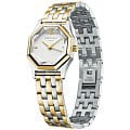 Женские кварцевые часы. Центральные часовая, минутная и секундная стрелки. Белый циферблат. Восьмиугольный корпус выполнен из полированной нержавеющей стали с частичнымIP-покрытиемIP-покрытиеМетод ионного напыления. Демонстрирует повышенную устойчивость к истиранию, окислению и химическим веществам. Под воздействием высокого давления и температуры около 1500°C молекулы металла надёжно соединяются с частицами корпуса часов. цвета желтого золота. Размер корпуса составляет 21,5 х 27,5 мм. Стальной браслет c частичным IP-покрытиемIP-покрытиеМетод ионного напыления. Демонстрирует повышенную устойчивость к истиранию, окислению и химическим веществам. Под воздействием высокого давления и температуры около 1500°C молекулы металла надёжно соединяются с частицами корпуса часов. с ювелирной застежкой. Прочное минеральное стеклоМинеральное стеклоМинеральное стекло представляет собой искусственно выращенный минерал кварца. Такое стекло отличается особой устойчивостью к повреждениям и царапинам. Уступает по некоторым качествам сапфировому стеклу. устойчивое к мелким механическим повреждениям. Водостойкость WR 30 (брызги).