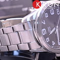 Браслет выполнен из нержавеющей стали и дополнен раскладывающейся застёжкой с кнопкой. Модель обладает водонепроницаемостью до 100 метров, что делает её подходящей для плавания и сноркелинга.