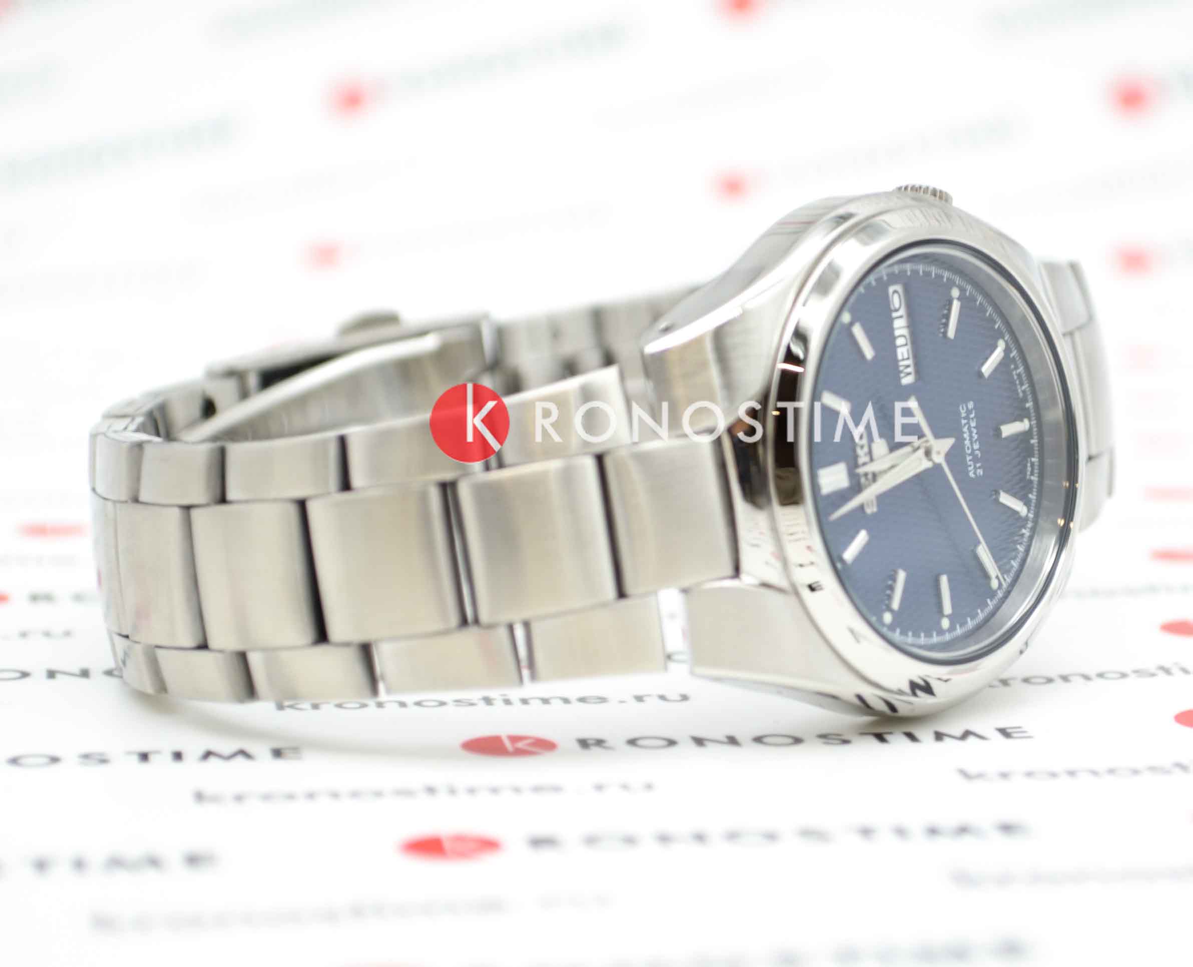 Наручные часы имеют синий циферблат, дополненный узором в спортивном стиле. Компактная модель привлекает универсальным исполнением, будет хорошо смотреться с повседневной, деловой, спортивной одеждой. Аксессуар сделан из стали 316L, серебристый металл устойчив к деформации, повреждениям, коррозии. Внутри надёжного корпуса находится японский автоматический механизм Seiko 7S26, характеризующийся запасом хода до 40 часов. Наблюдать за его работой можно через прозрачную заднюю крышку. Для защиты циферблата используется минеральное стекло Hardlex повышенной прочности. Стрелки имеют люминесцентную подсветкуЛюминесцентное покрытиеПозволяет считывать показания времени в темноте. Производители наносят на стрелки, часовые индексы, безель или поверхность циферблата светонакопительный состав, дающий холодное свечение.. Часы оснащены функцией календаря с индикацией числа и дня недели. Диаметр корпуса: 36 мм.
