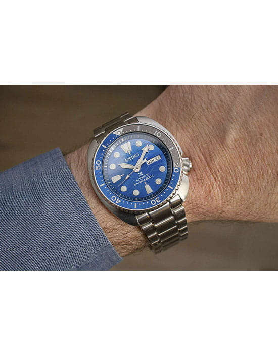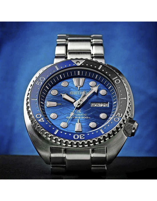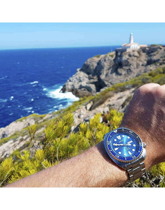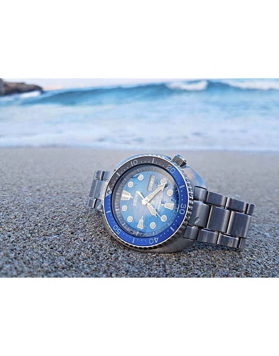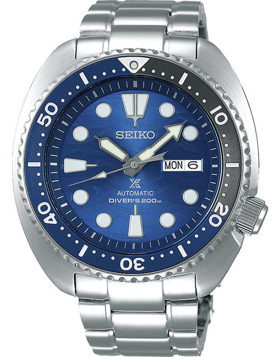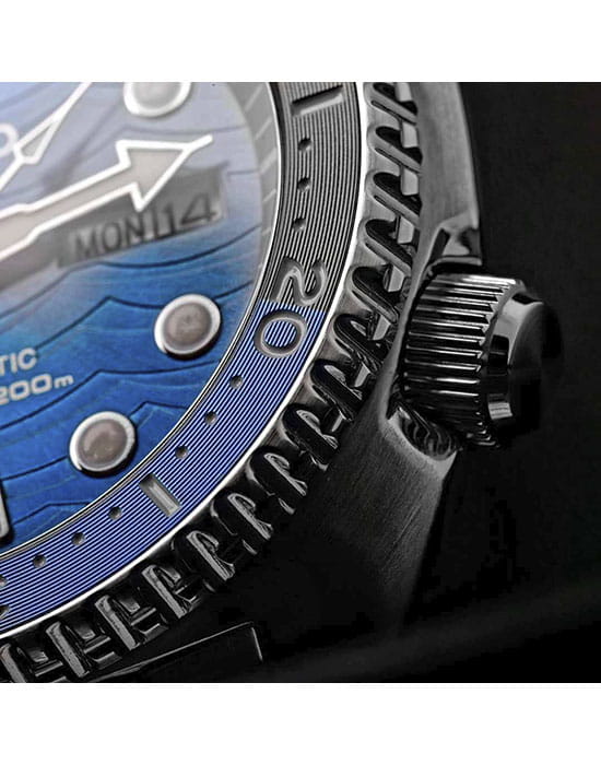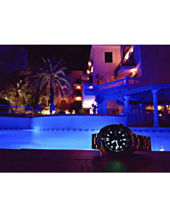 Аксессуар имеет дайвеский характер. Он реализован в массивном корпусе, выдерживающим давление воды, вращающемся безеле, крупной индикацией времени. Наручные часы с возможностью автоматического и ручного завода оснащены пружинным японским калибром 4R35 с 23 камнями, резерв хода сохраняется на 41 час. Модель защищена по всем параметрам: прочное минеральное стекло Hardlex, закручивающаяся задняя крышка, завинчивающаяся заводная головка с защитой. На стрелки и метки нанесено люминесцентное покрытие LumiBriteЛюминесцентное покрытиеПозволяет считывать показания времени в темноте. Производители наносят на стрелки, часовые индексы, безель или поверхность циферблата светонакопительный состав, дающий холодное свечение.. Надёжный корпус из антикоррозионной стали 316L дополнен цветным PVD-финишемPVDУльтратонкое покрытие наносится в технике вакуумного напыления, сочетает в себе нитрид титана особой прочности со слоем золота или оксида хрома. Несёт в себе декоративную или защитную функцию.. Повышенная водозащита WR 200 позволяет нырять и плавать в часах. Практичной является функция отображения даты и дня недели. Диаметр корпуса: 43,5 мм.