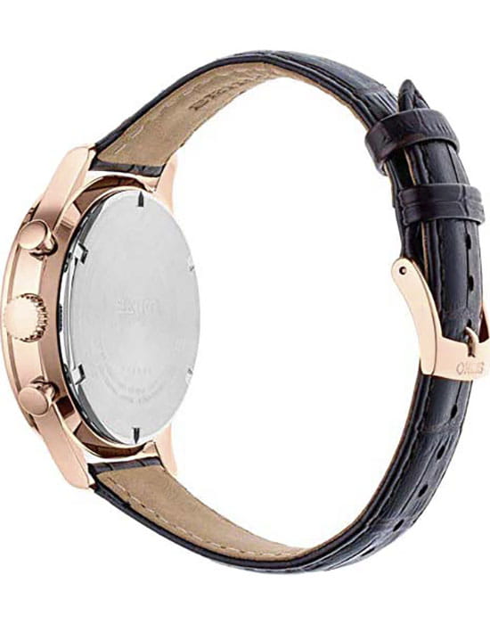 Аксессуар представлен в элегантном стиле, лаконичный корпус из стали 316L с PVD-финишемPVDУльтратонкое покрытие наносится в технике вакуумного напыления, сочетает в себе нитрид титана особой прочности со слоем золота или оксида хрома. Несёт в себе декоративную или защитную функцию. гармонично сочетается с ремешком из натуральной телячьей кожи. Японский кварцевый механизм Seiko 8T67 отличается с точностью хода ±15 секунд в месяц. Прочное минеральное стекло Hardlex устойчиво к царапинам. Функции: секундомер, хронографХронографФункция позволяет измерять отрезки времени с особой точностью: часы, минуты, секунды. Верным признаком хронографа является наличие на циферблате 3 дополнительных окошек-счётчиков., календарь.