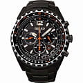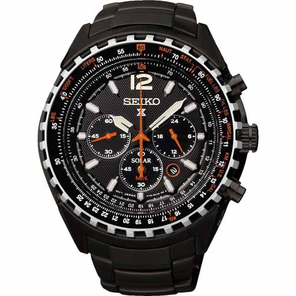 Питание от солнечной энергии. Функция индикации заряда (EOL) и предотвращения перезарядки. Запас хода при полной зарядке аккумулятора 6 месяцев. Часы-хронограф с секундомером до 1ч, точностью 1/5с. 12-ти и 24-х часовой формат времени. Вращающийся безель. Завинчивающиеся заводная головка и задняя крышка. Браслет с раскладывающейся застежкой. Застежка с системой блокировки.